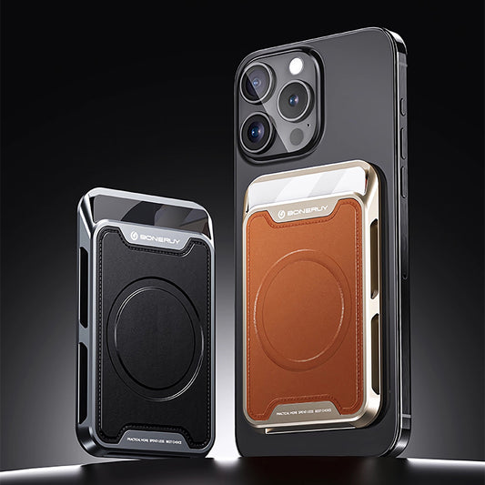 Armor King MagSafe Card Holder Aluminum Alloy + Genuine Leather Magnetic Phone Wallet