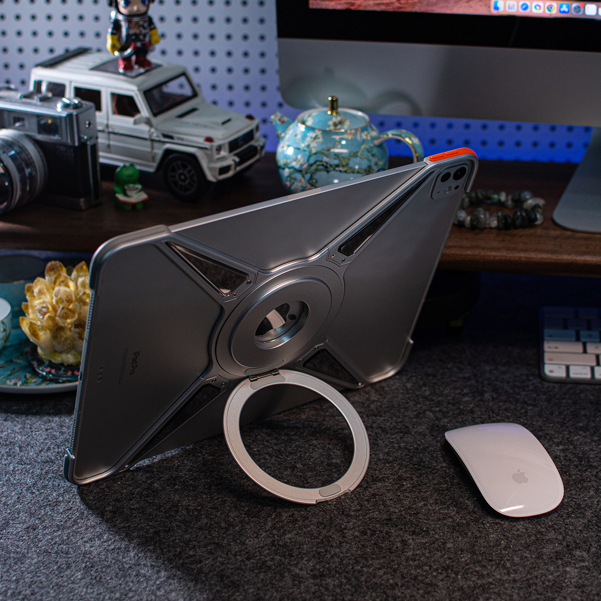 Amor King X 360° Magsafe Pivot Ring Stand True Air Shockproof Metal Alloy Case for Apple iPad