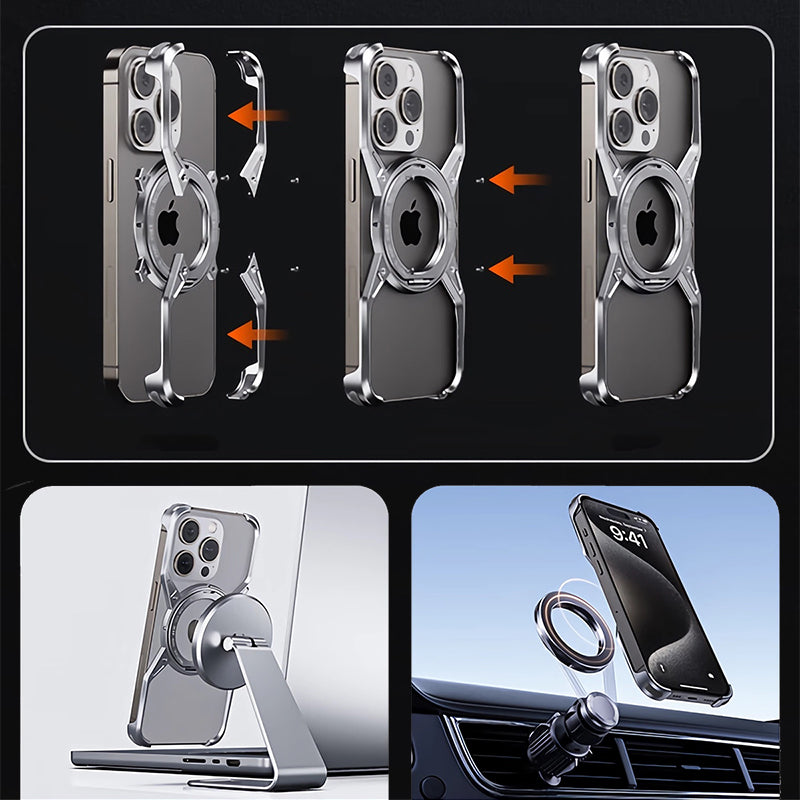 Armor King Alien X Frame MagSafe Pivot Ring Stand Air Cushion Metal Case Cover