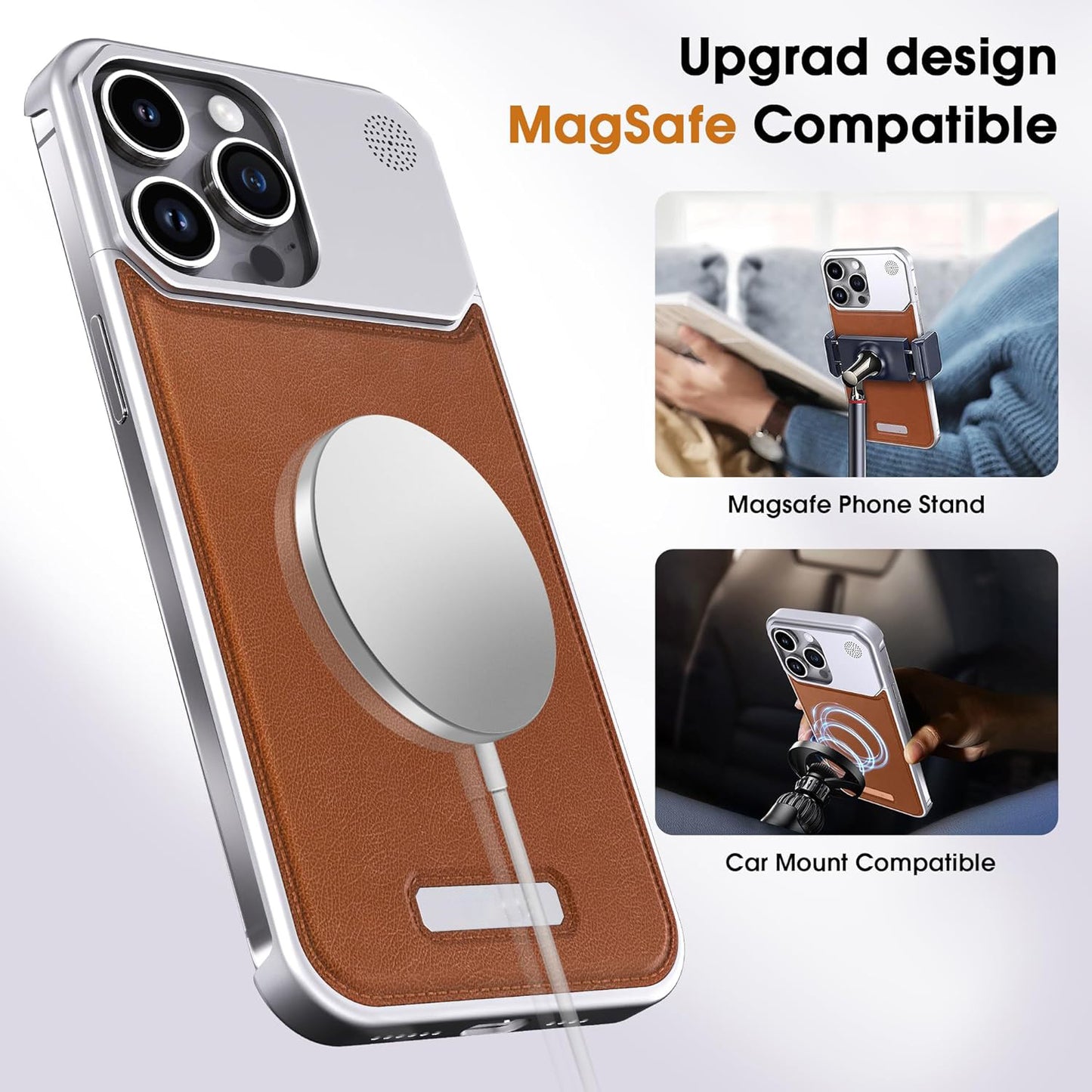 Armor King MagSafe Aluminum+Leather Heat Dissipation Aromatherapy Protective Cover Case