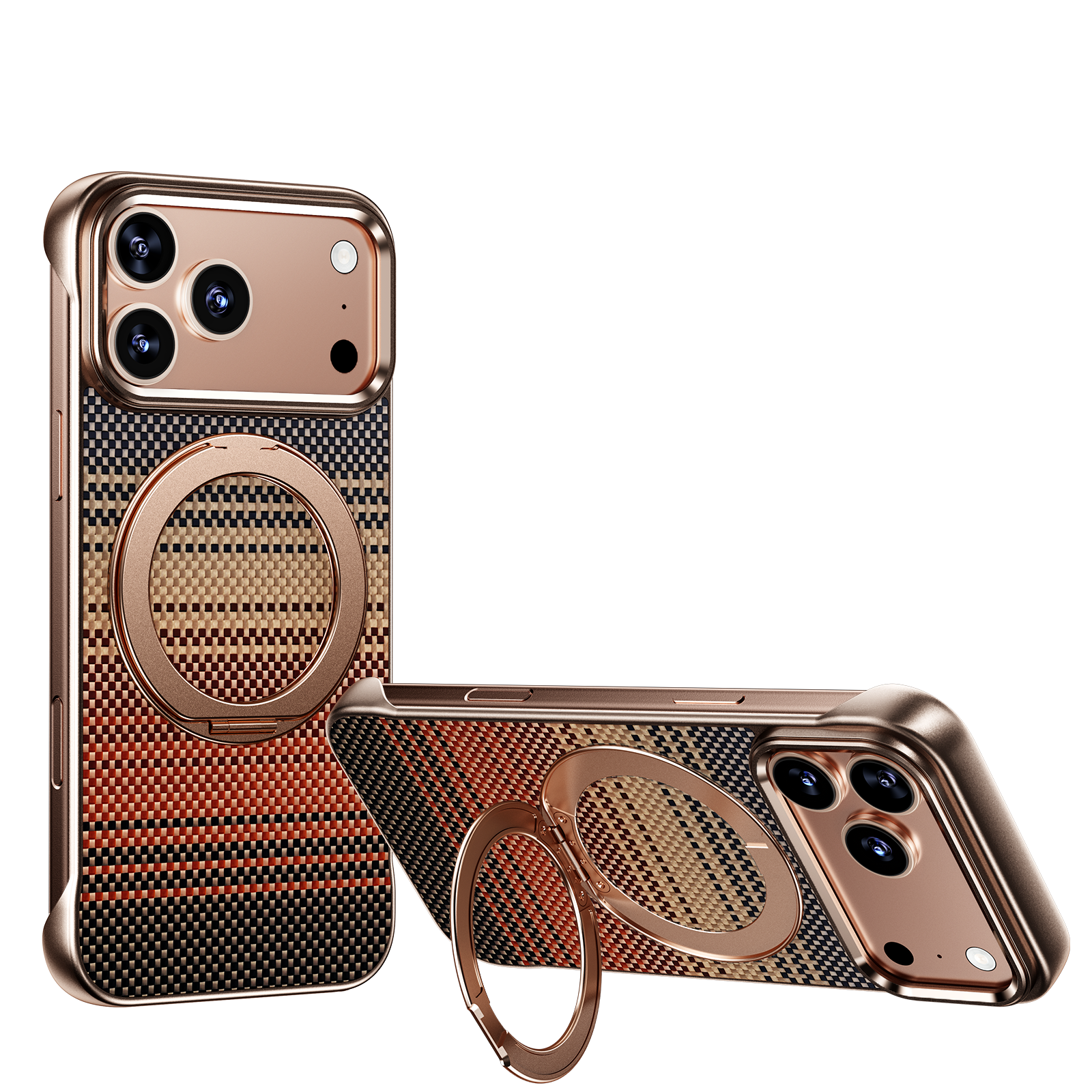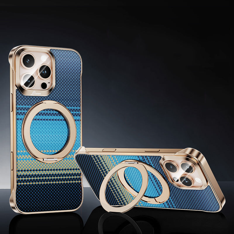 Armor King Bezel-less Aramid Fiber MagSafe Pivot Ring Stand PC Back Case Cover