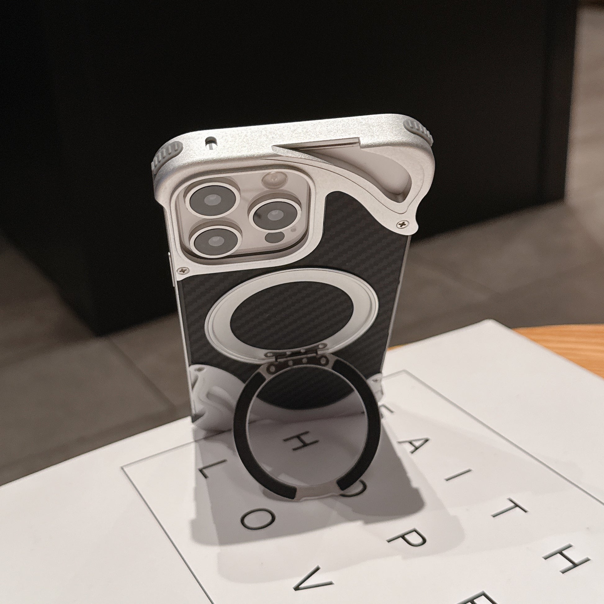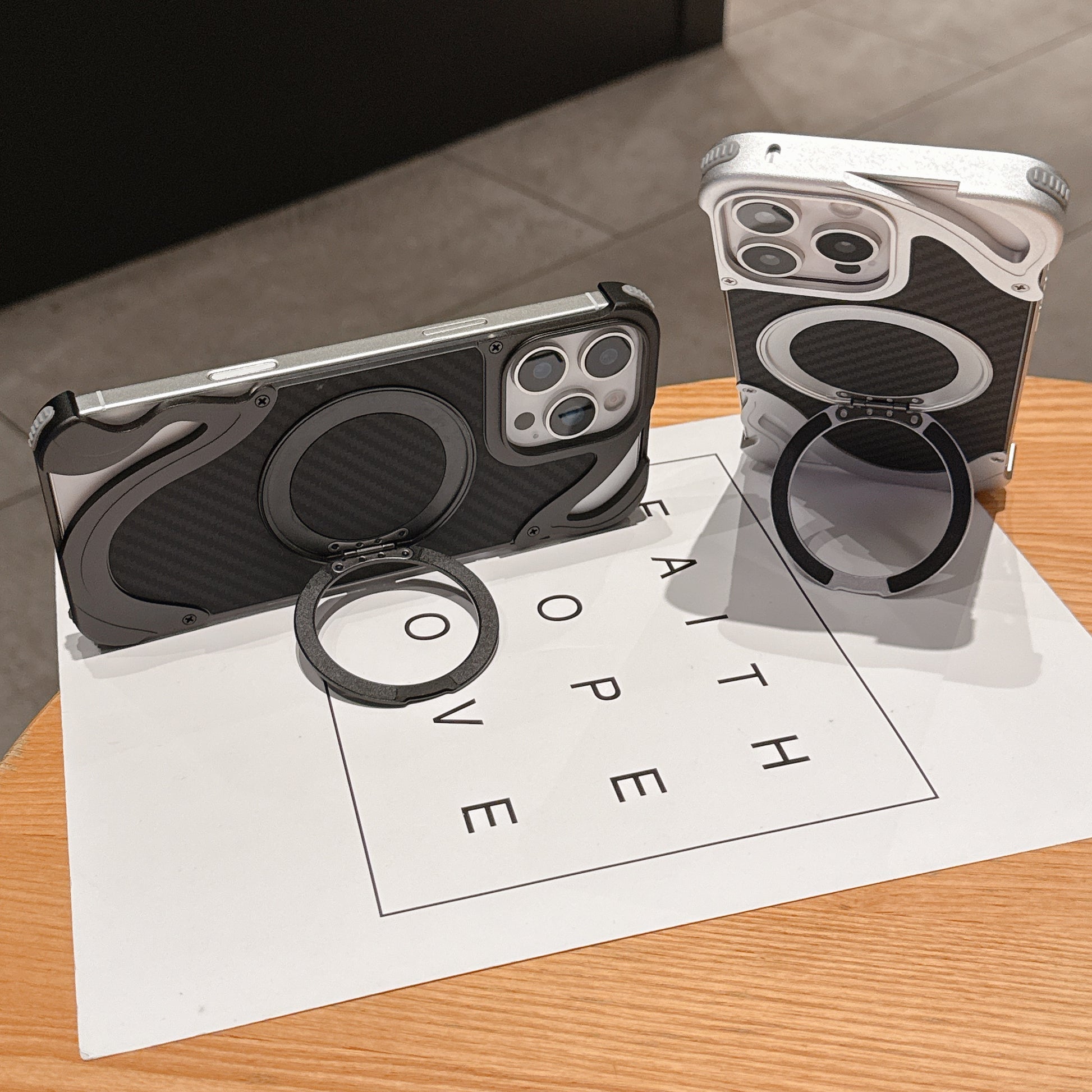 Armor King Dolphin Bezel-less MagSafe Pivot Ring Stand Aramid Fiber Metal Case Cover