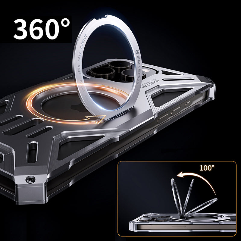 Armor King Hegemony MagSafe Pivot Ring Stand Aluminum Alloy Metal Case Cover