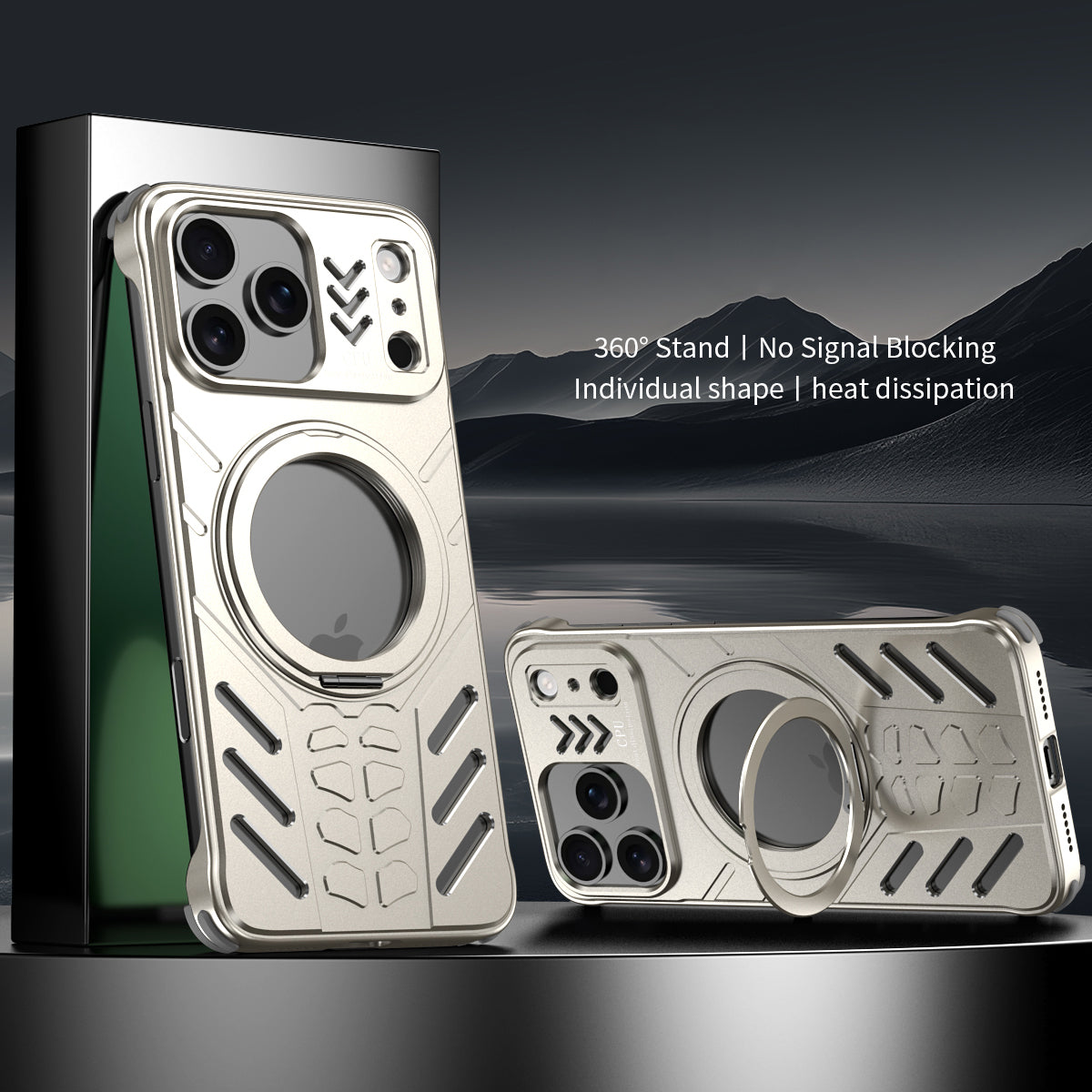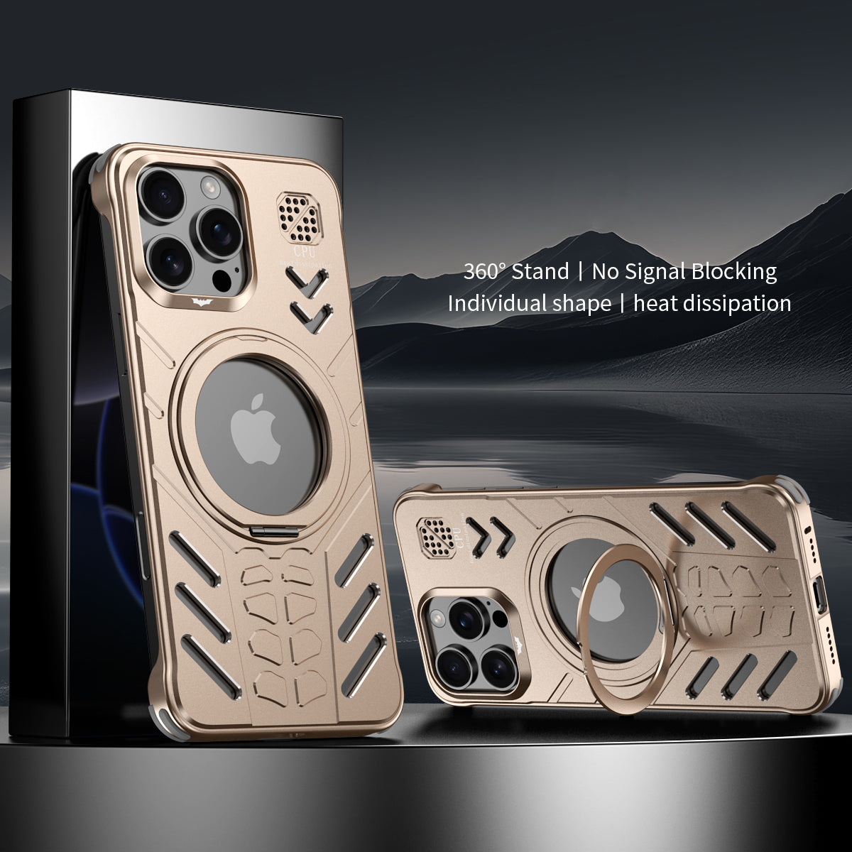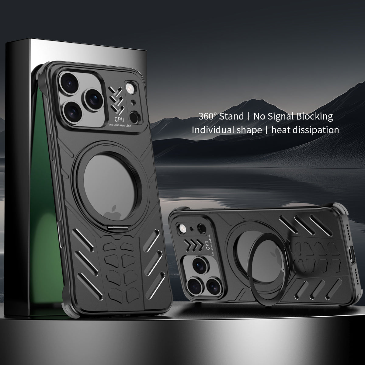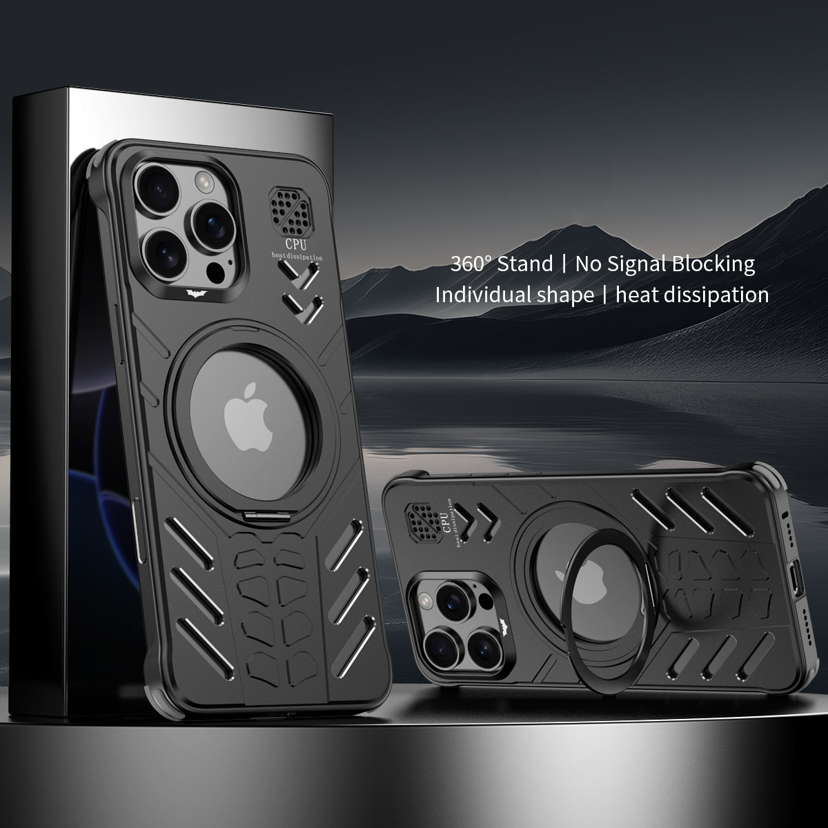 Armor King Knight MagSafe 360° Rotation Kickstand Heat Dissipation Thermal Air Cushion Metal Case Cover