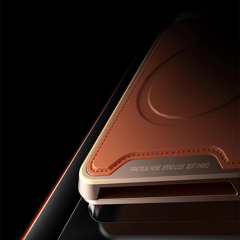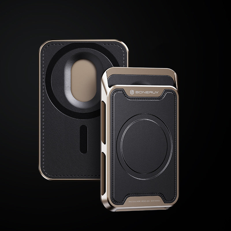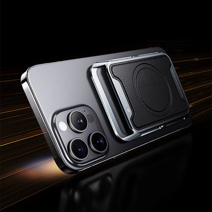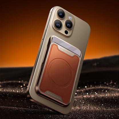 Armor King MagSafe Card Holder Aluminum Alloy + Genuine Leather Magnetic Phone Wallet