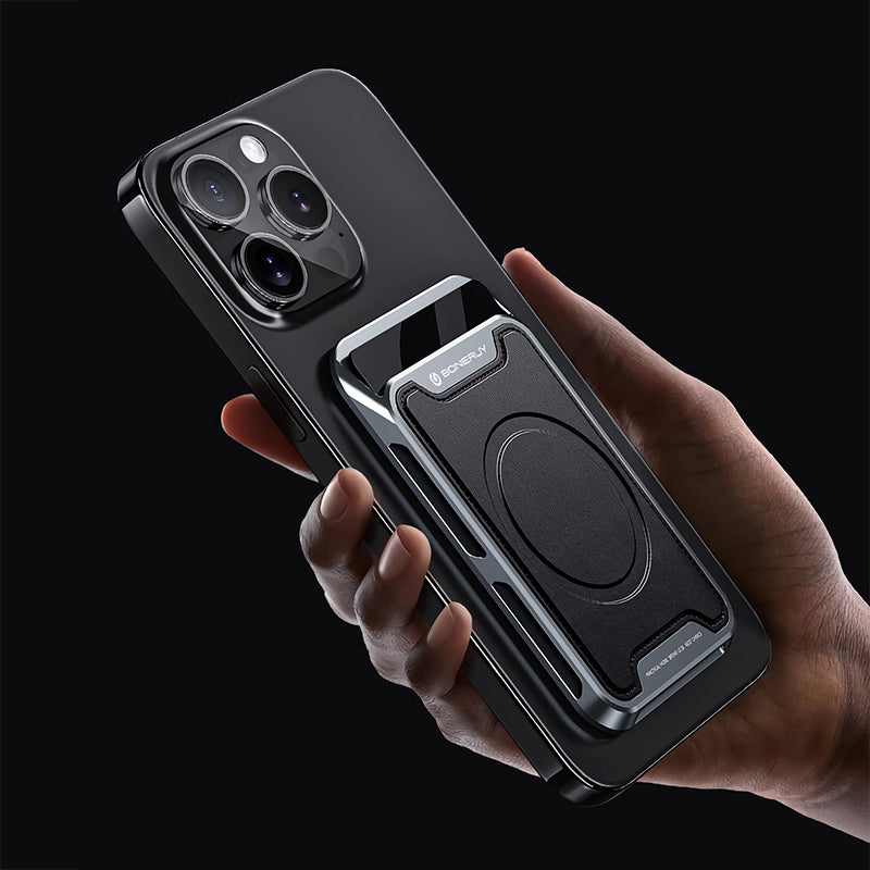 The card holder has built-in high-quality strong magnets, which are compatible with MaqSafe magnetic suction function, stable adsorption without cumbersome, and every step of the disassembly and assembly process can be attached and removed in seconds.