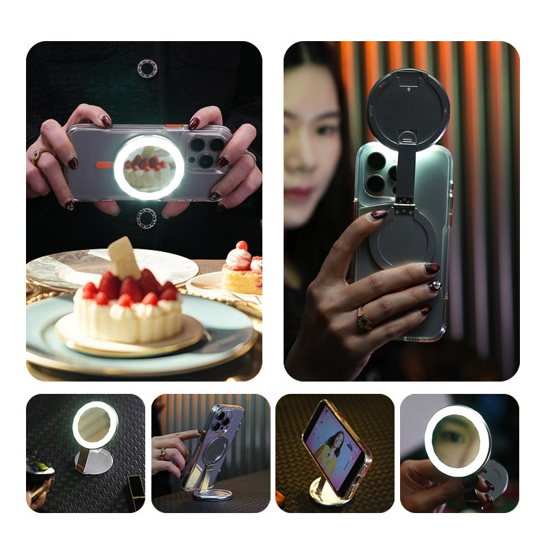 - Multifunctional makeup mirror, magnetic holder, fill light, night light, makeup, photography fill light, MagSafe magnetic desktop holder, adjustable brightness, stable support, portable and lightweight.