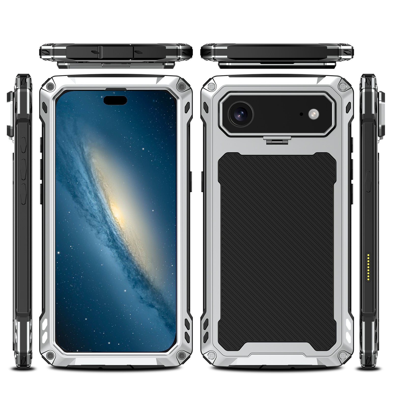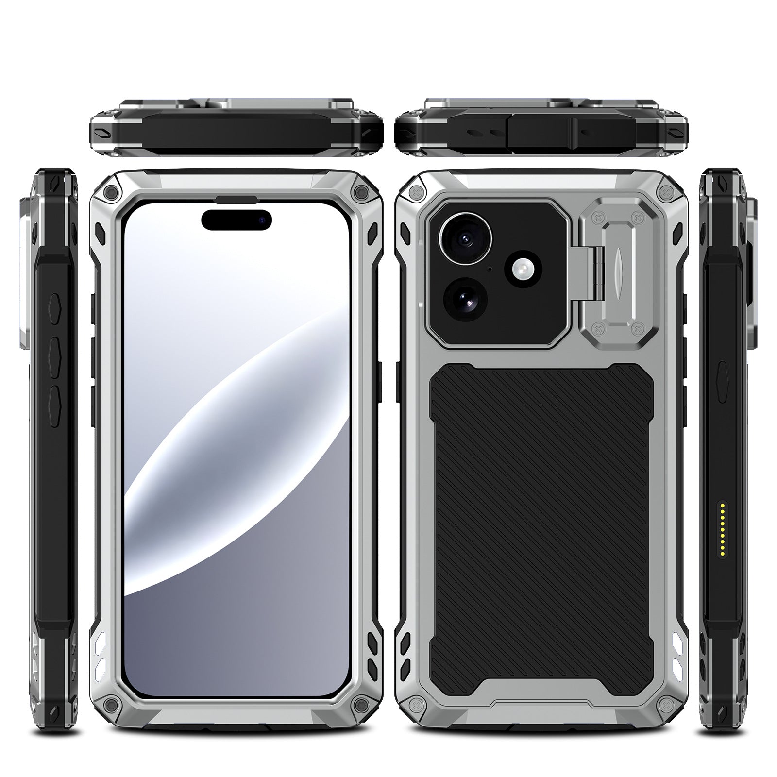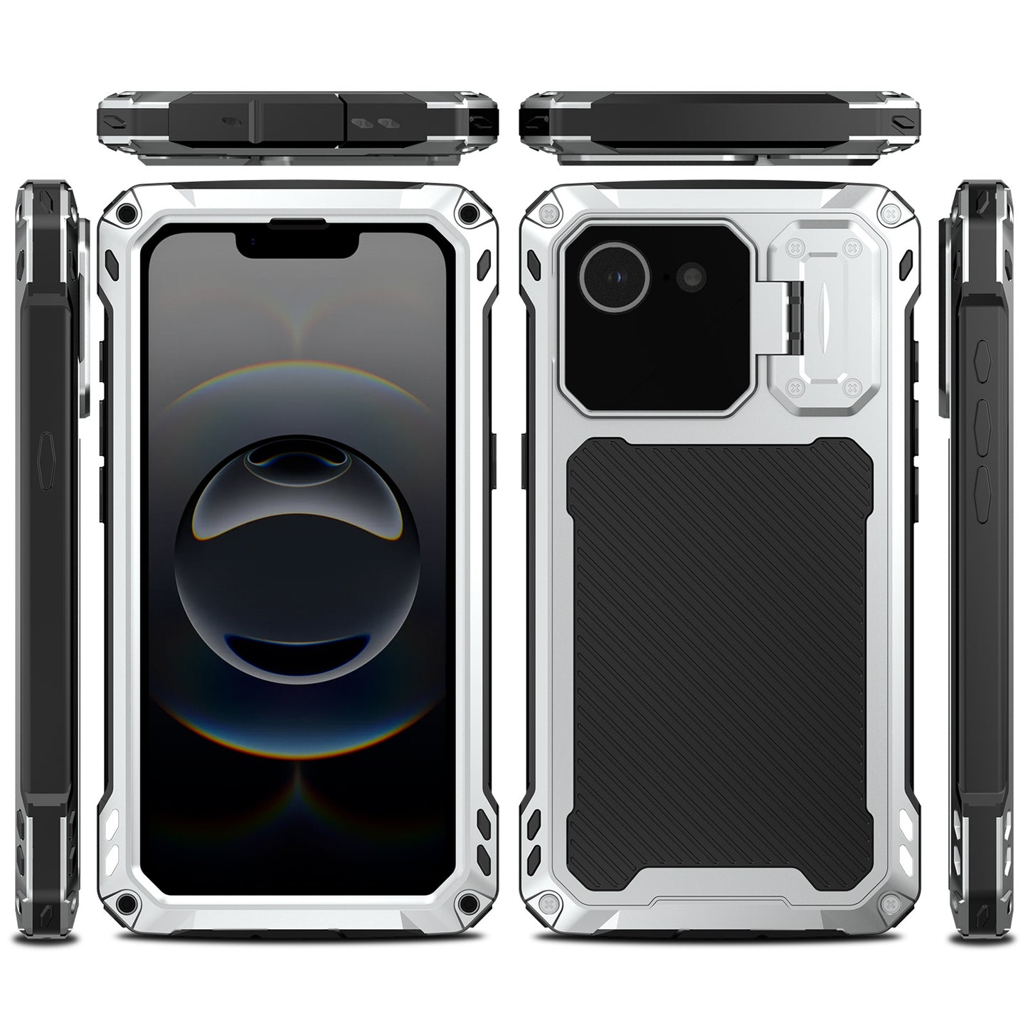 Armor King Silver Shield MagSafe Lens Protector Kickstand Military Heavy Duty Metal Case