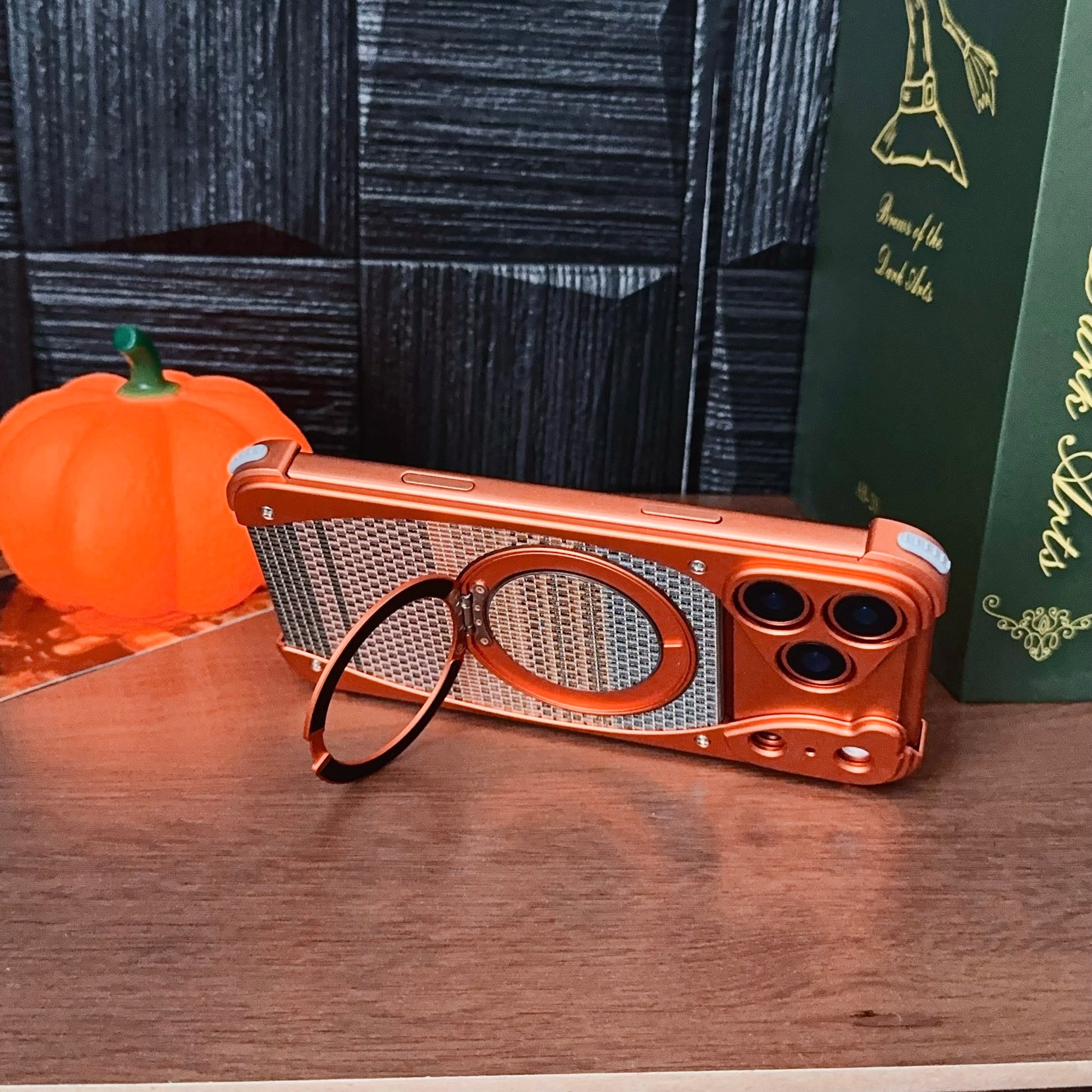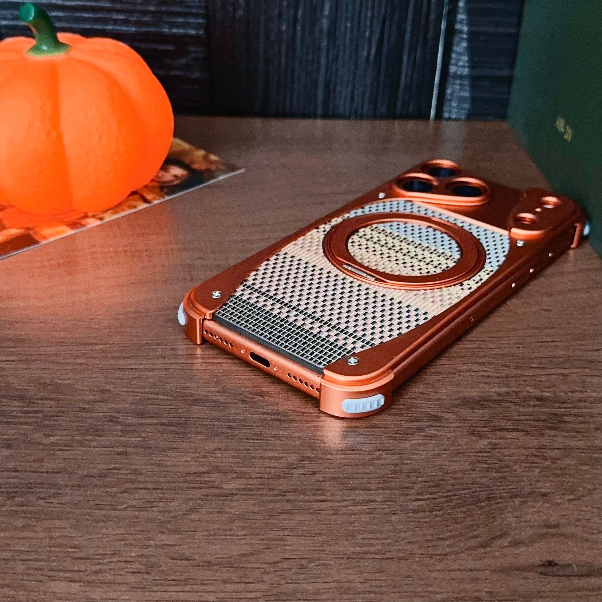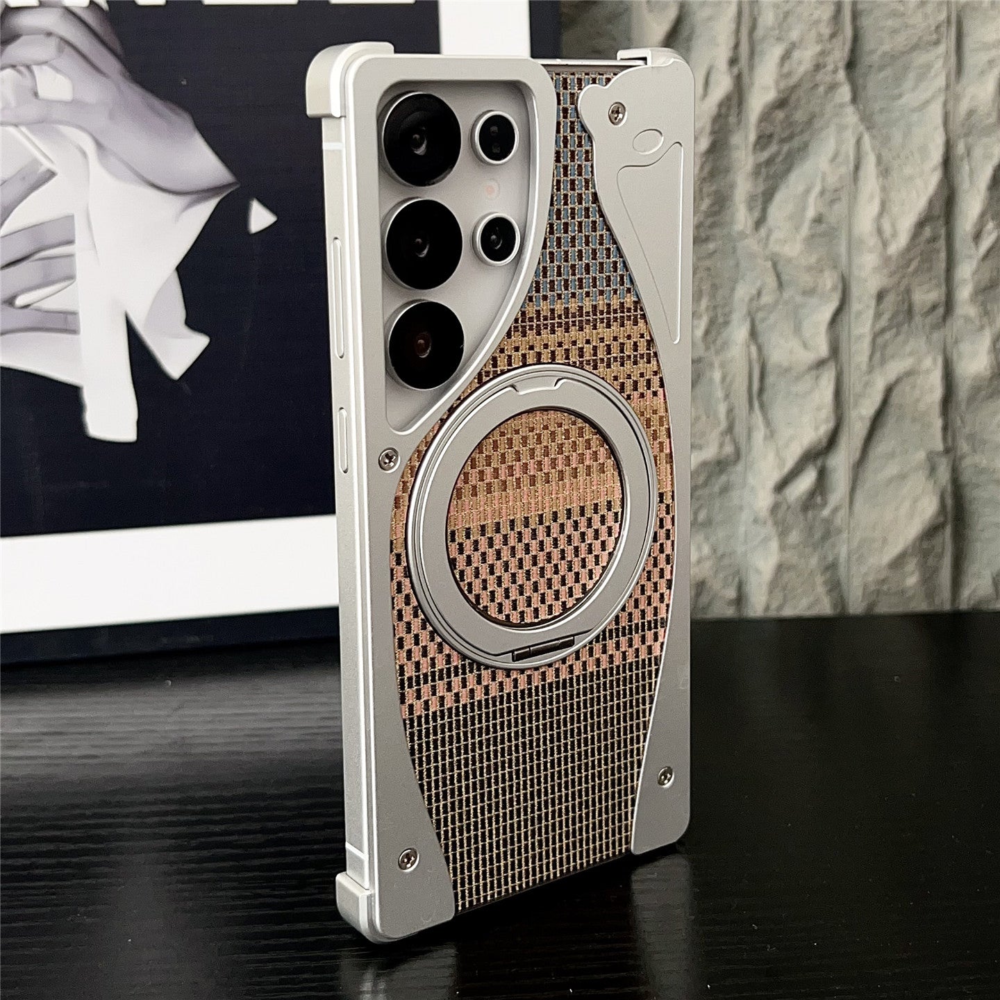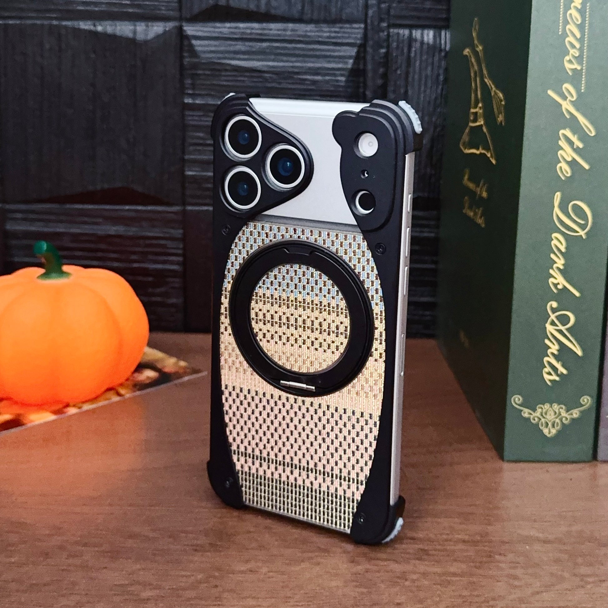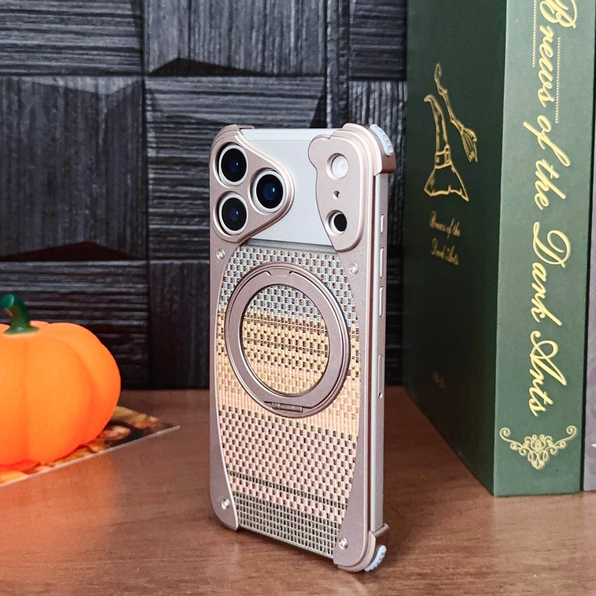 Armor King Stoat Bezel-less MagSafe Pivot Ring Stand Golden Silk Silver Brocade Metal Case Cover