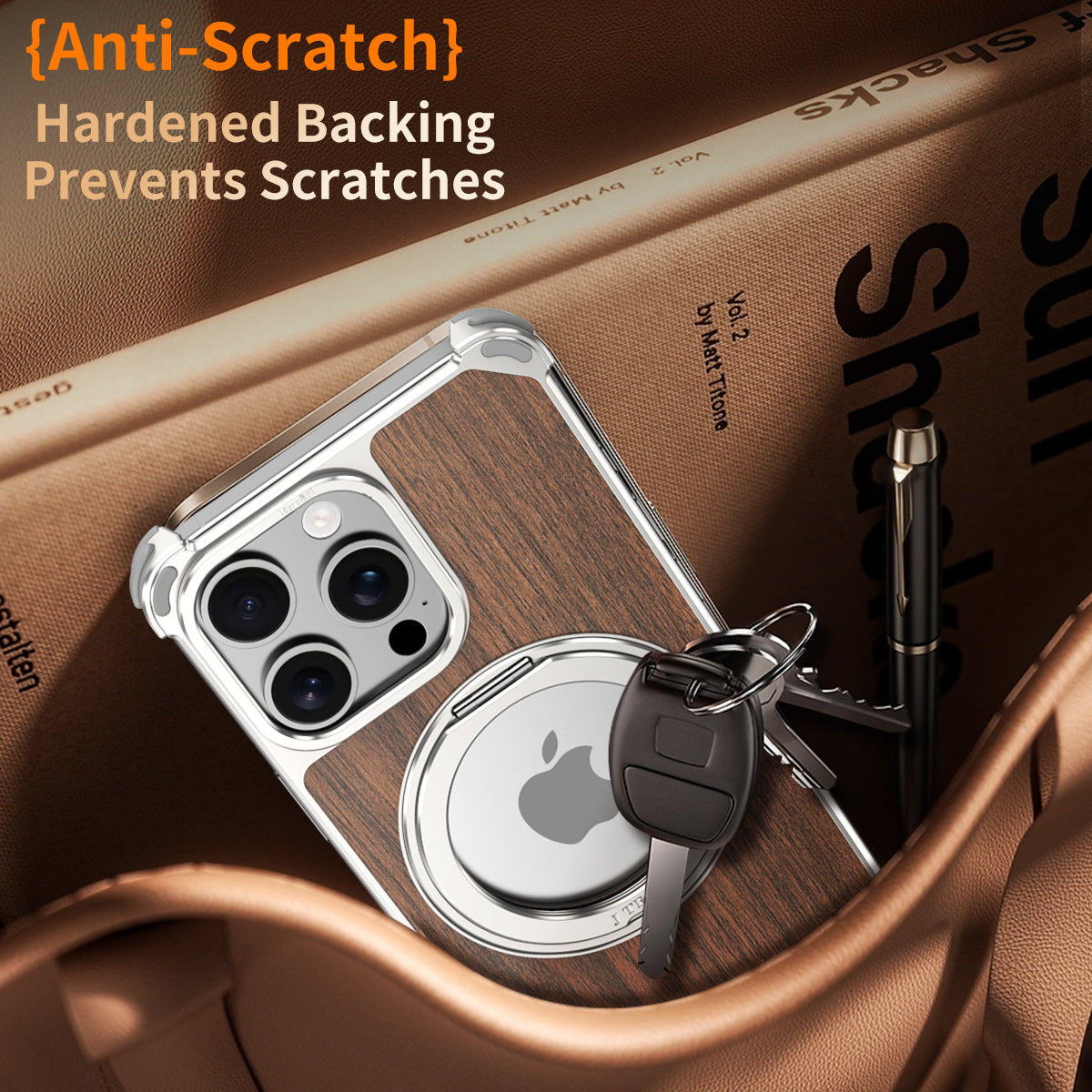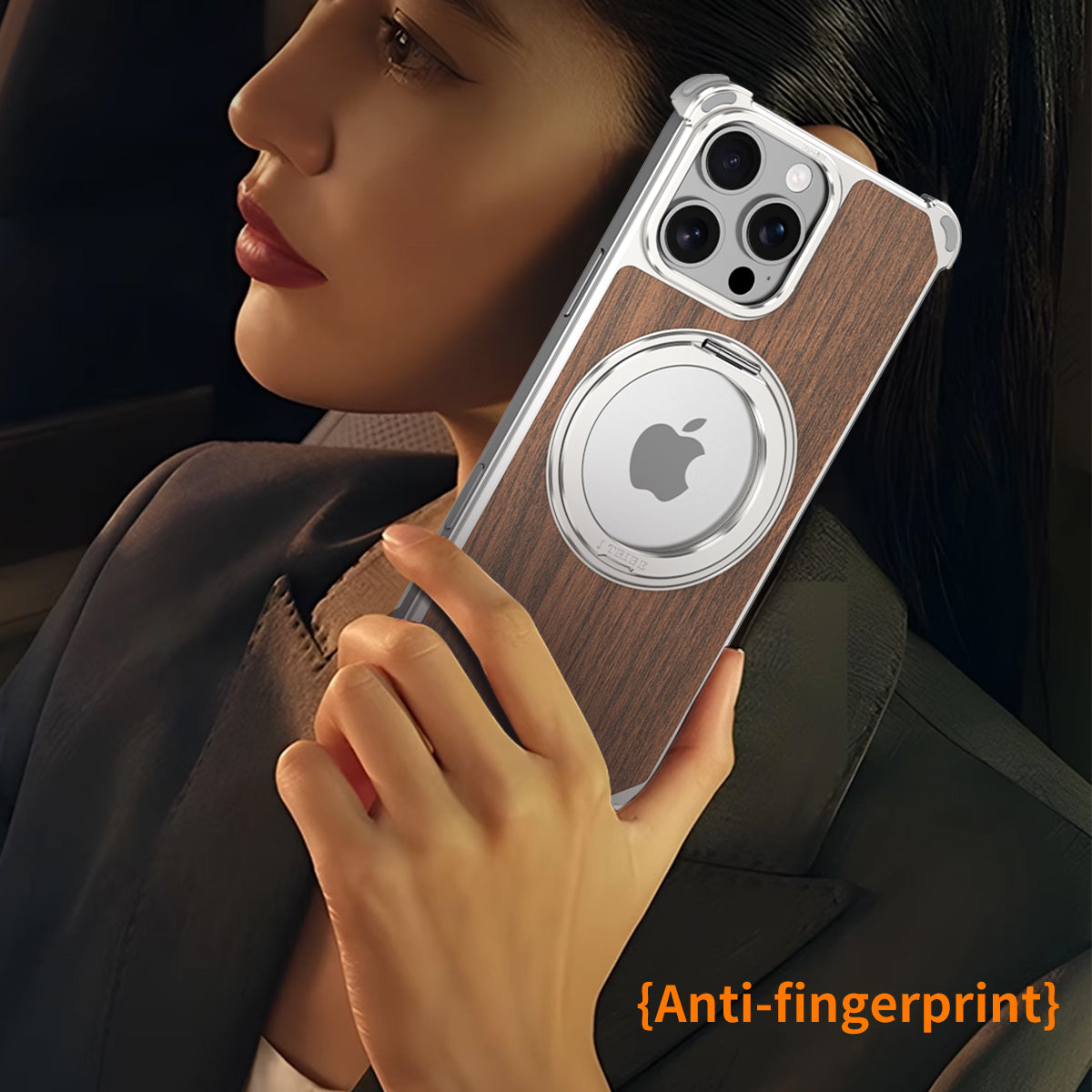 Armor King Yamu MagSafe Pivot Ring Stand Walnut Wood + Metal Case Cover