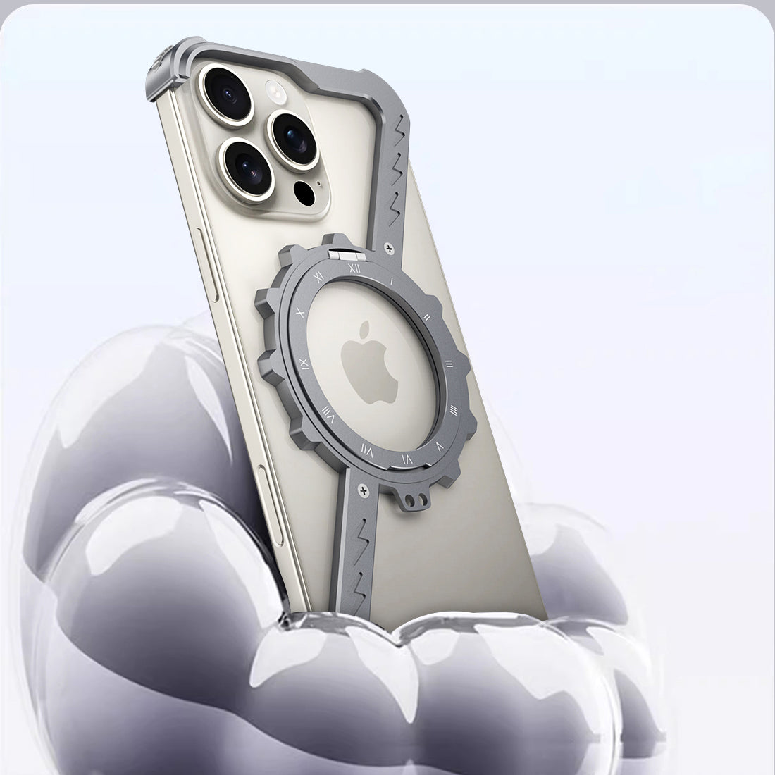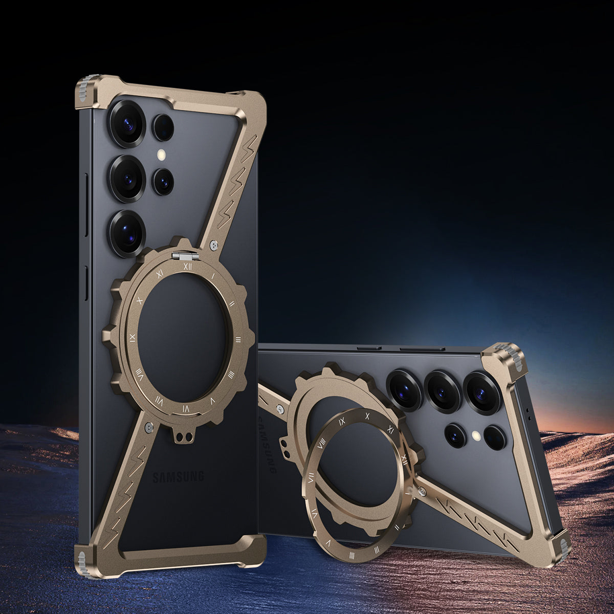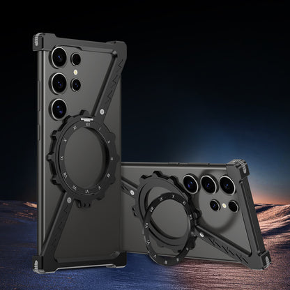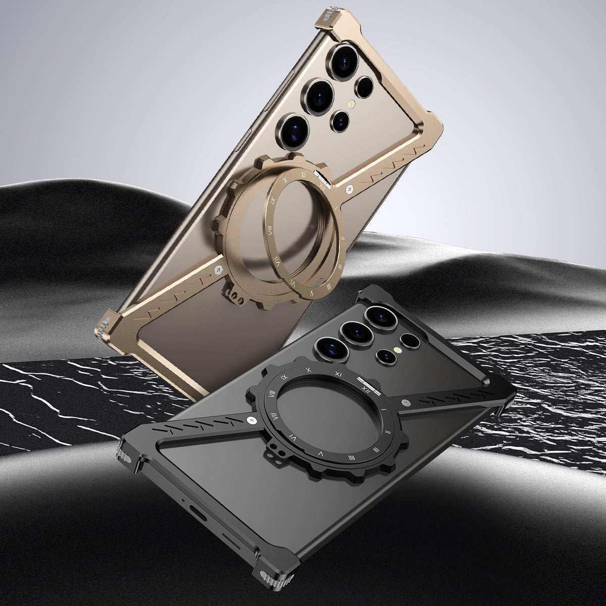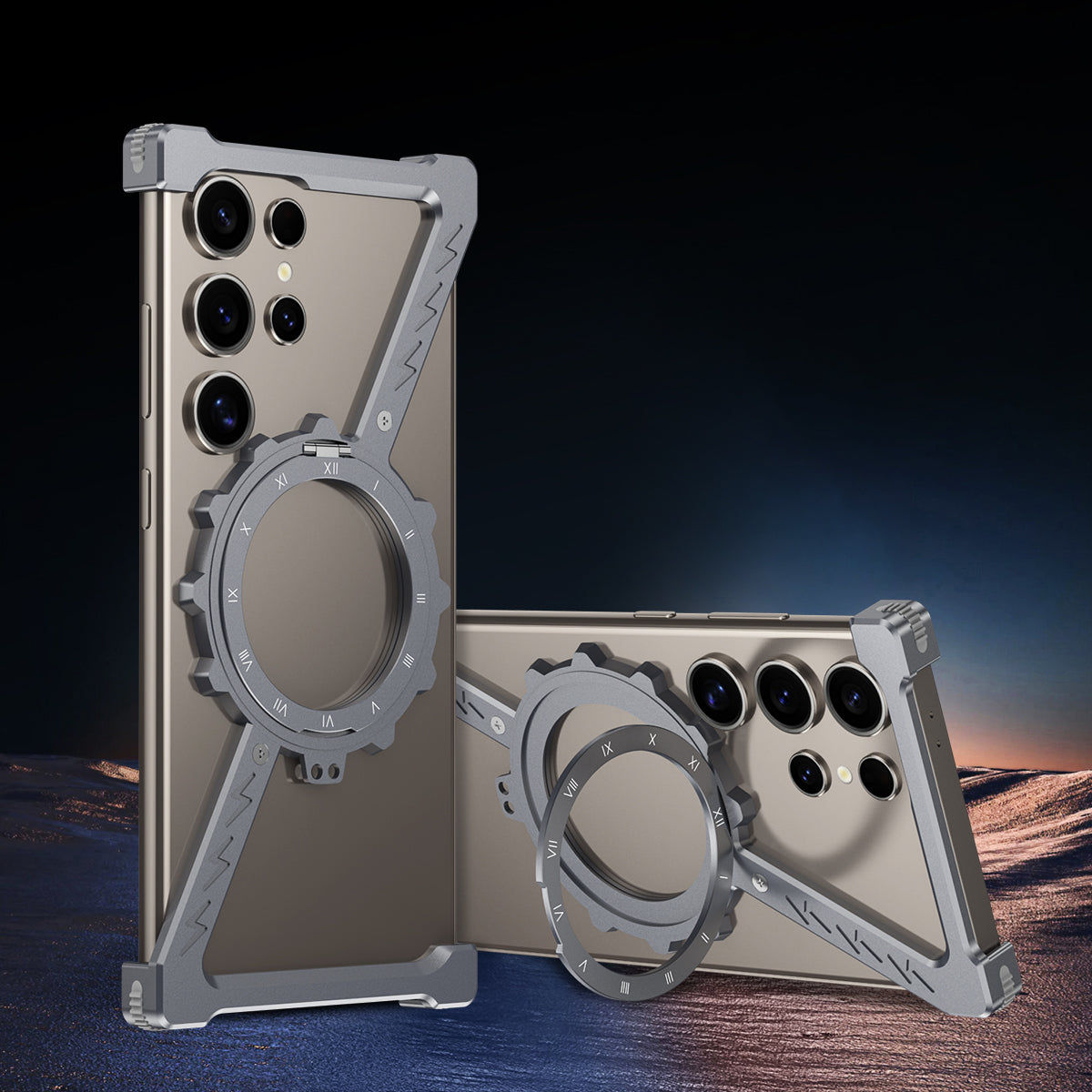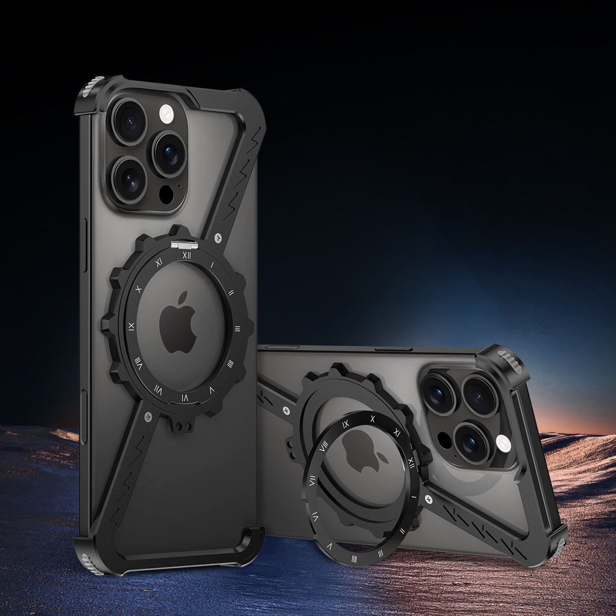 Armor King Z Mechanical Gear MagSafe Pivot Ring Stand Air Cushion Luminous Metal Case Cover