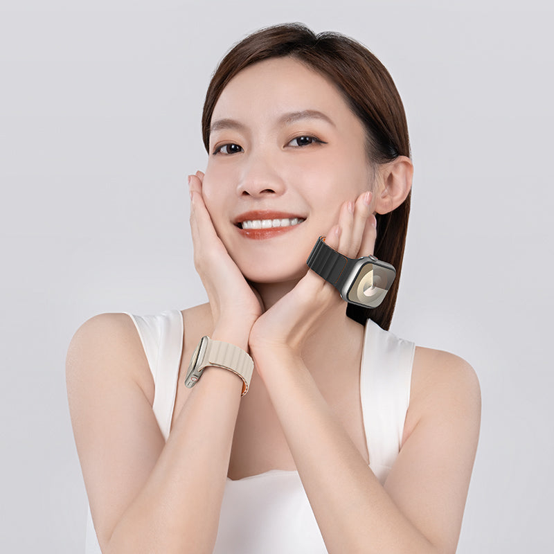 Crafted with a powerful magnetic connection, this band clasps with an effortless click. It's a fit that's firm and reassuring, yet astonishingly simple to adjust. The concealed closure complements the watch's contours, creating a sleek silhouette that's both secure and sophisticated.