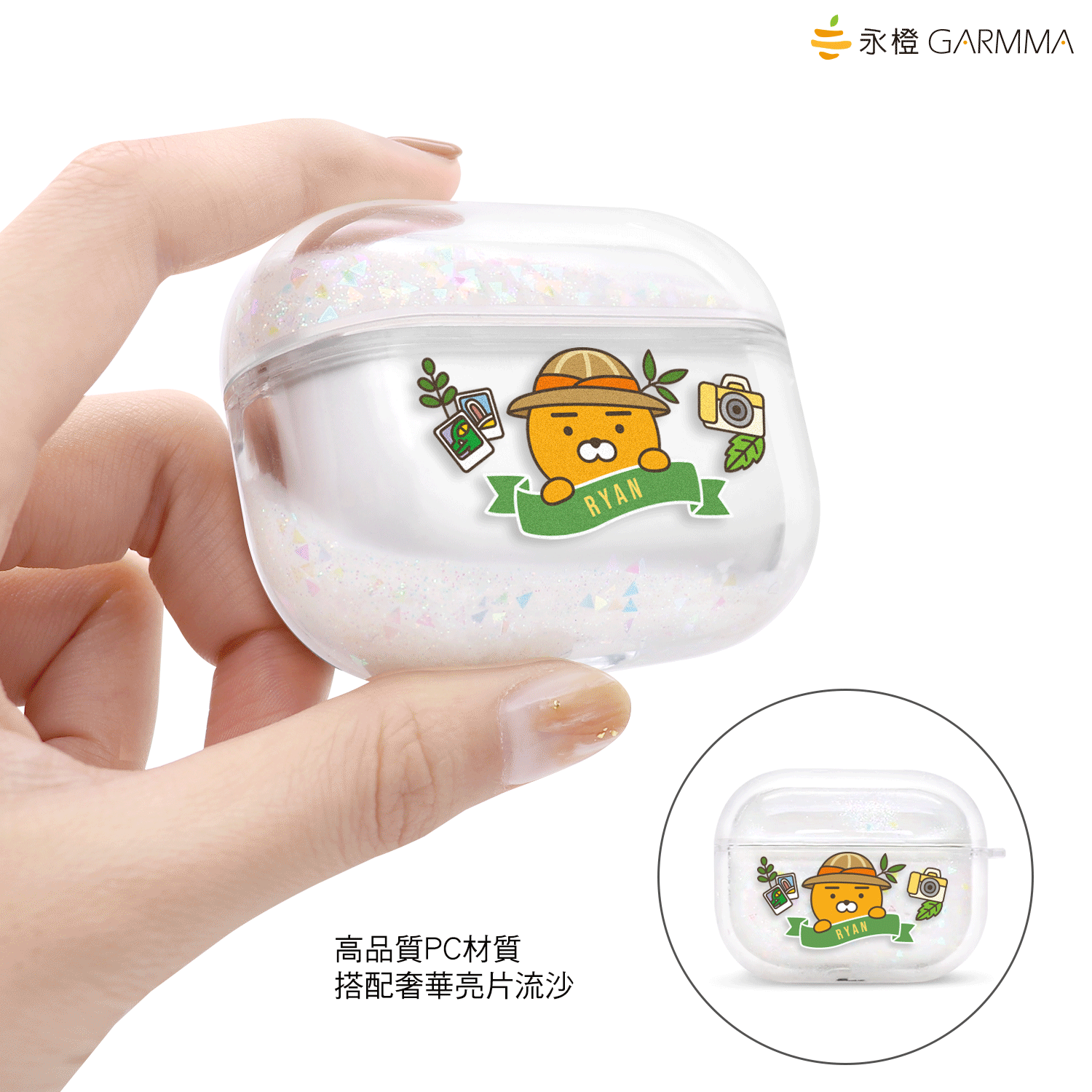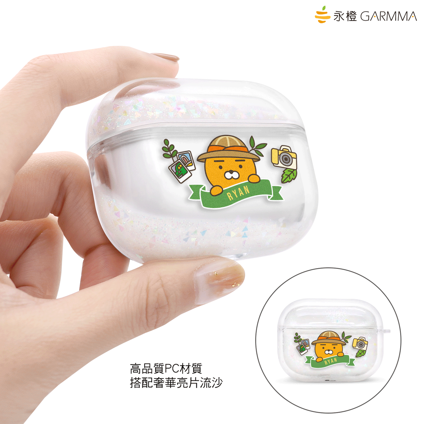 GARMMA Kakao Friends Glitter Quicksand Apple AirPods Case Cover with Carabiner Clip