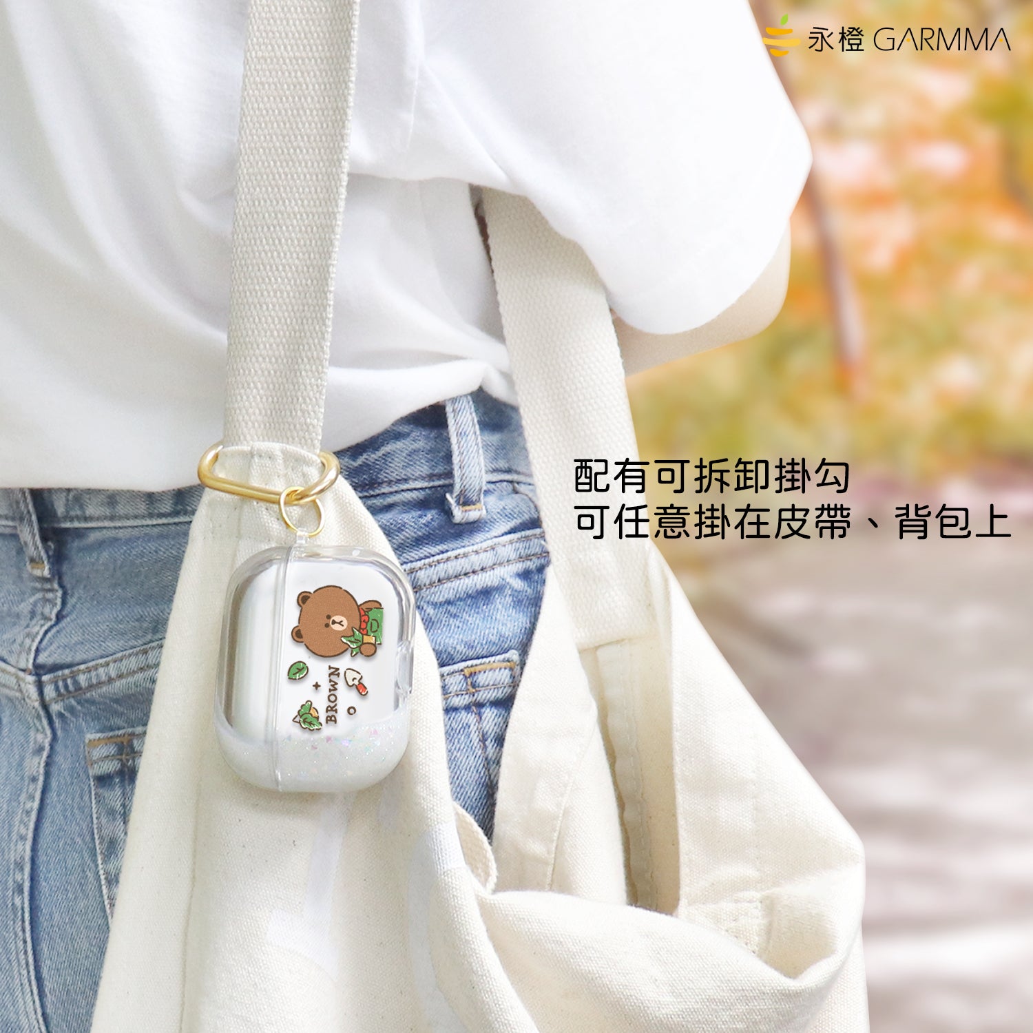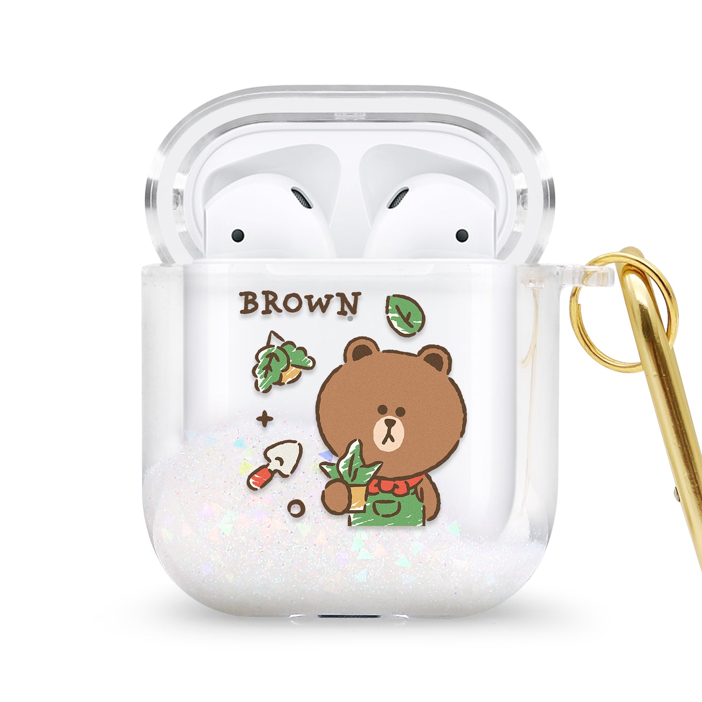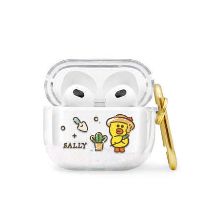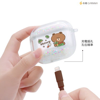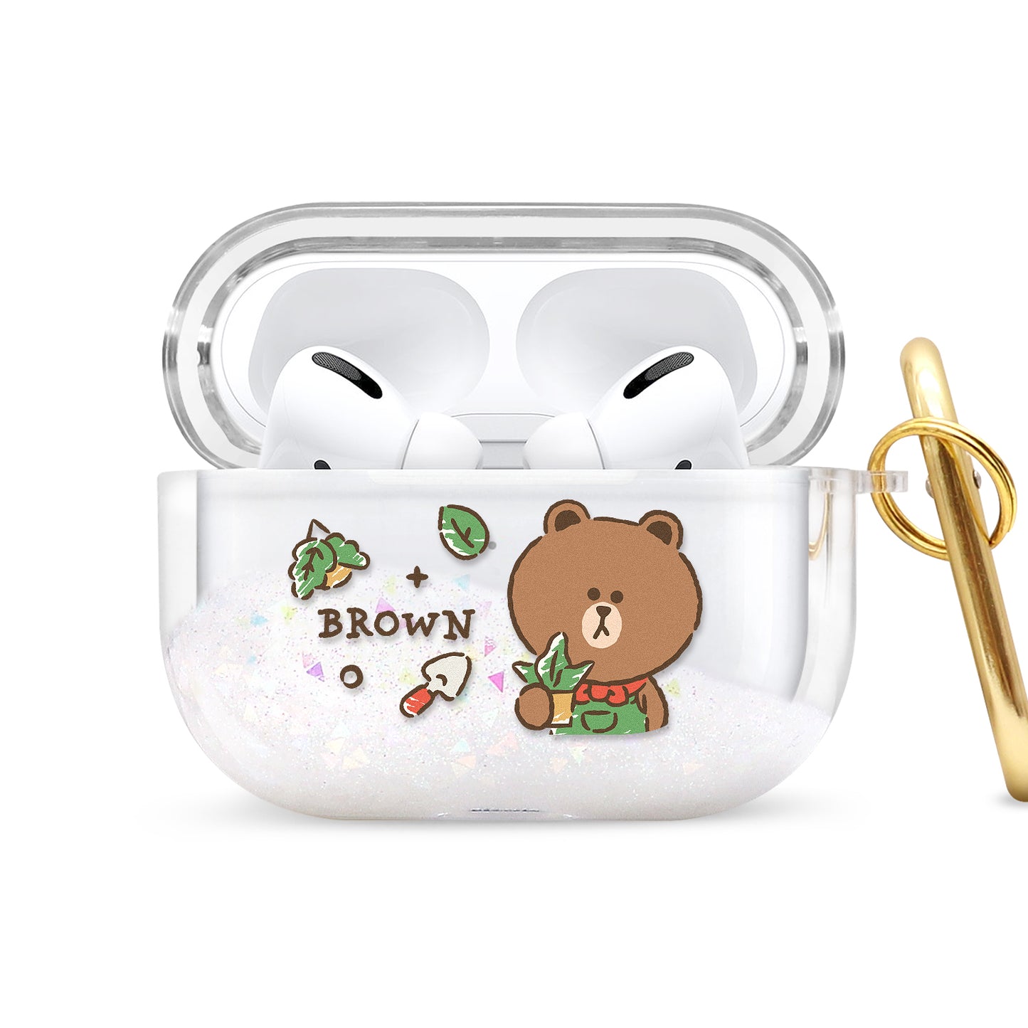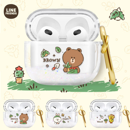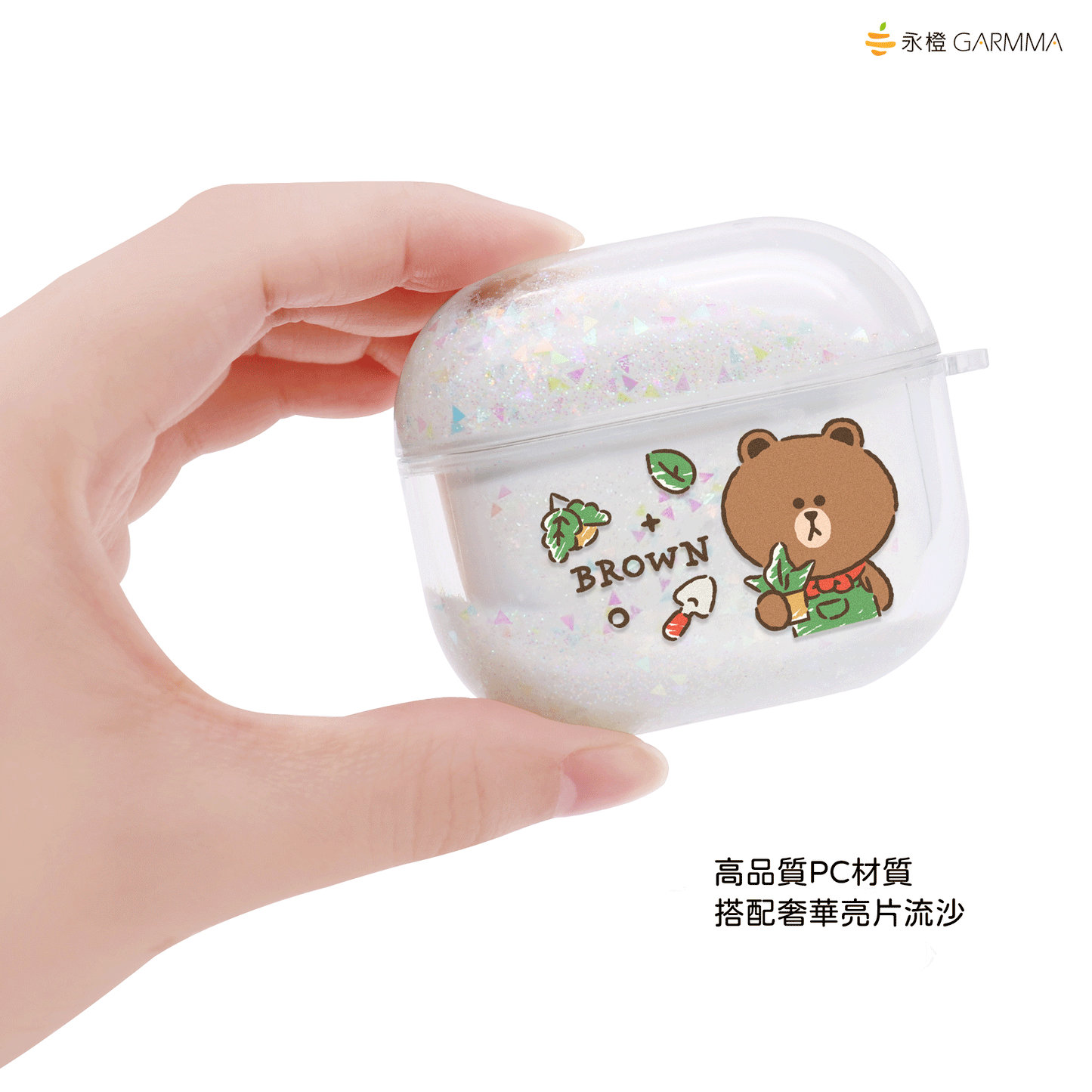 GARMMA Line Friends Glitter Quicksand Apple AirPods Pro Case Cover with Carabiner Clip