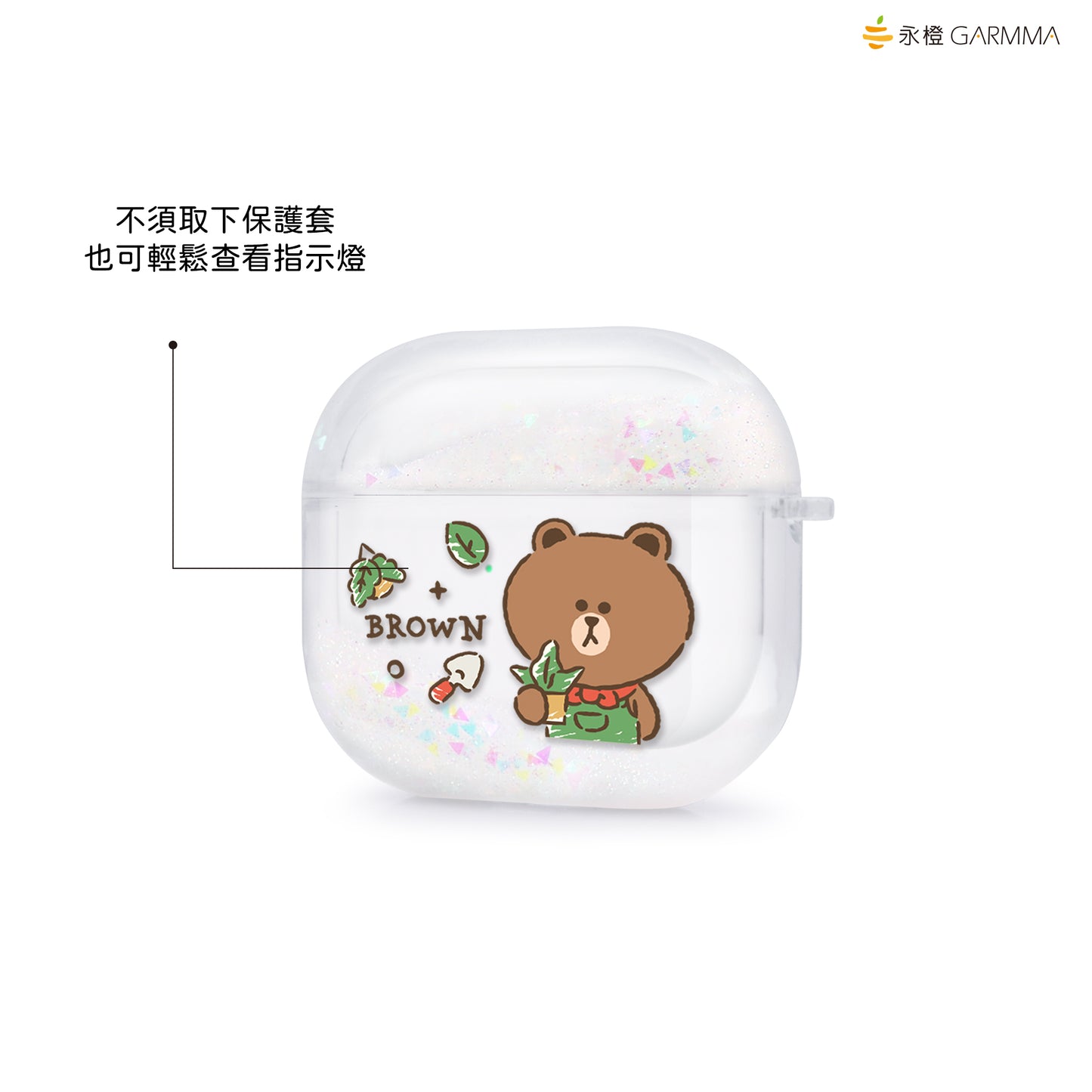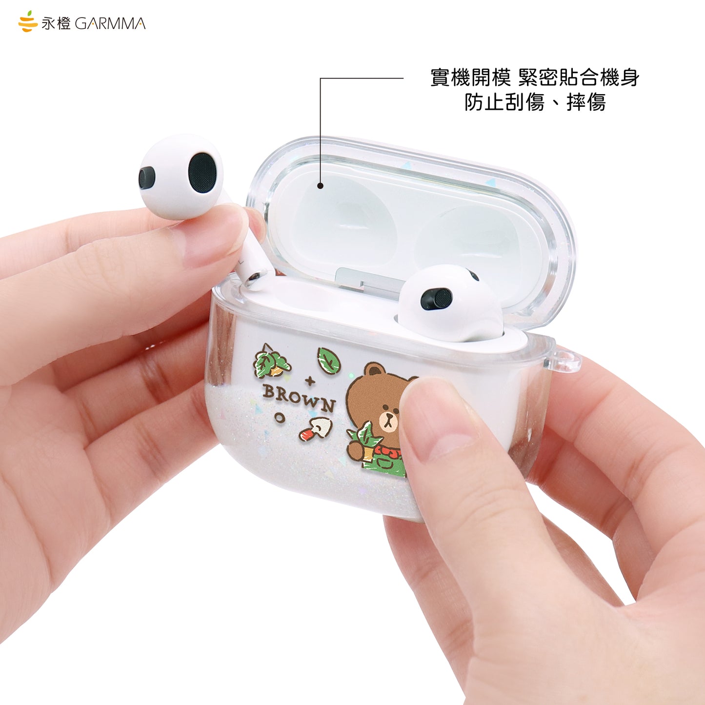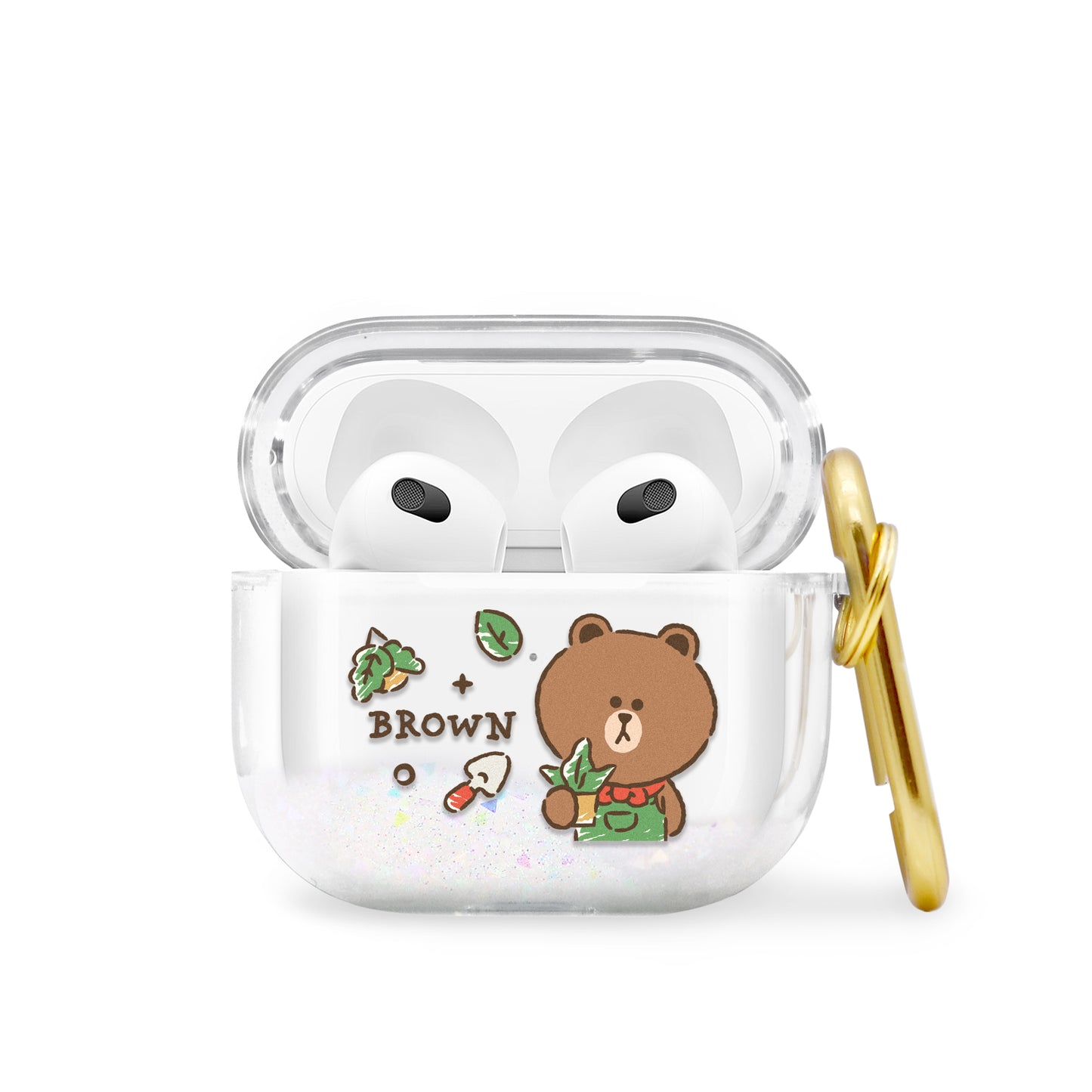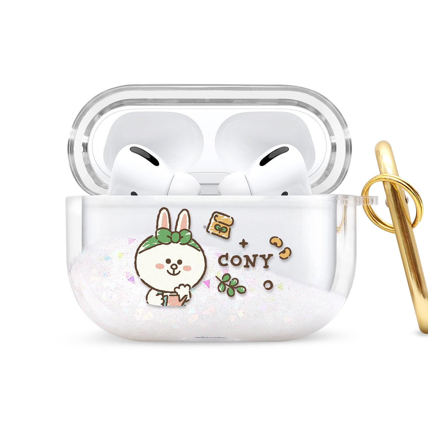 GARMMA Line Friends Glitter Quicksand Apple AirPods Pro Case Cover with Carabiner Clip