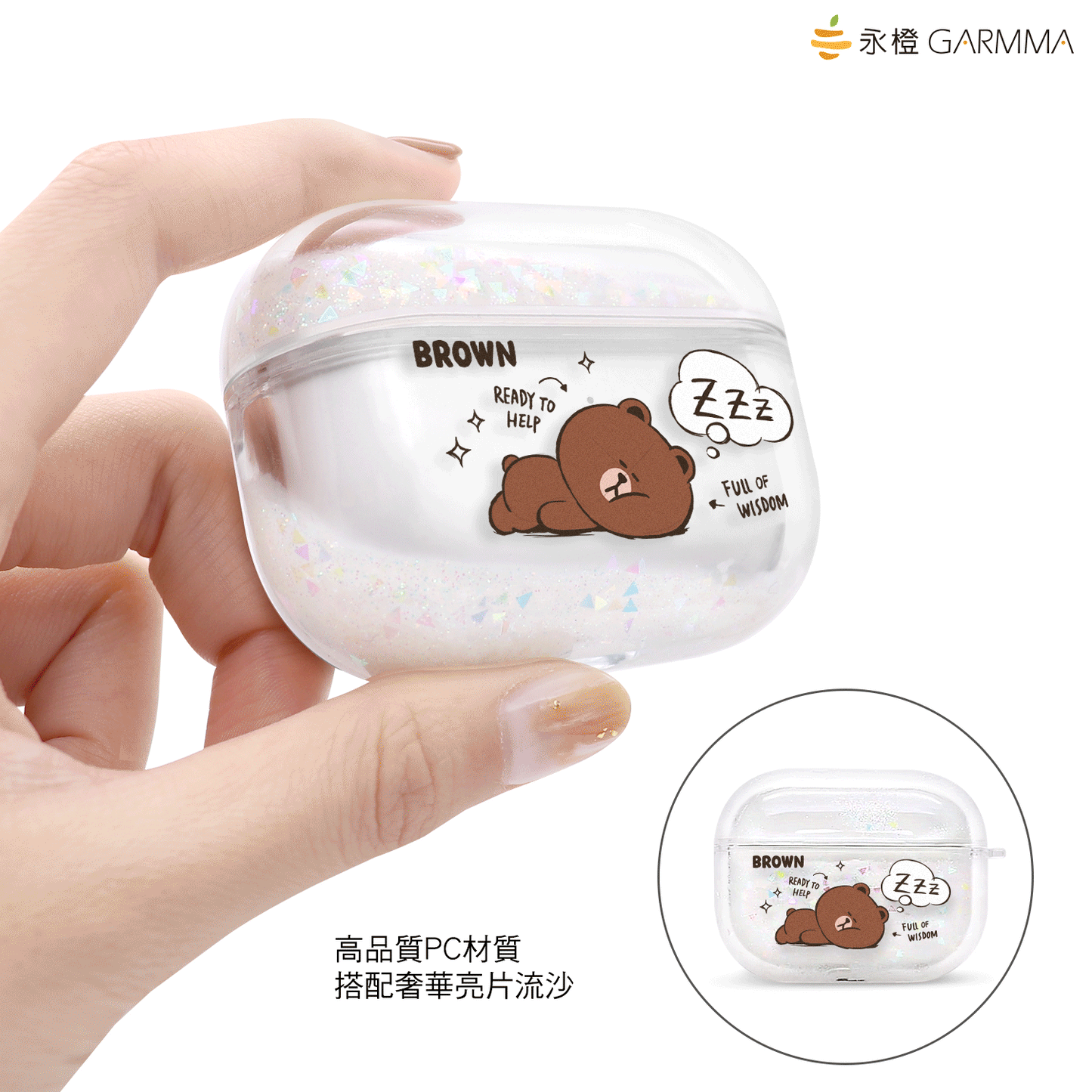GARMMA Line Friends Glitter Quicksand Apple AirPods Pro/2/1 Charging Case Cover with Carabiner Clip