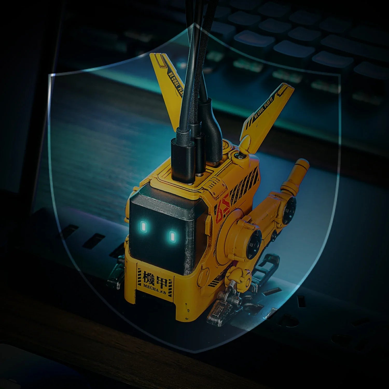 Charge your devices with the stylish Transformers, a mecha robot-inspired charger that doubles as a statement piece. Its shape-shifting feature and ice-blue front lights bring a futuristic touch to your workspace, delivering a unique, fast, and efficient charging experience. Loved by our users for its 'cool' design, Transformers is not just a charger, it's your desk's new 'little buddy.'