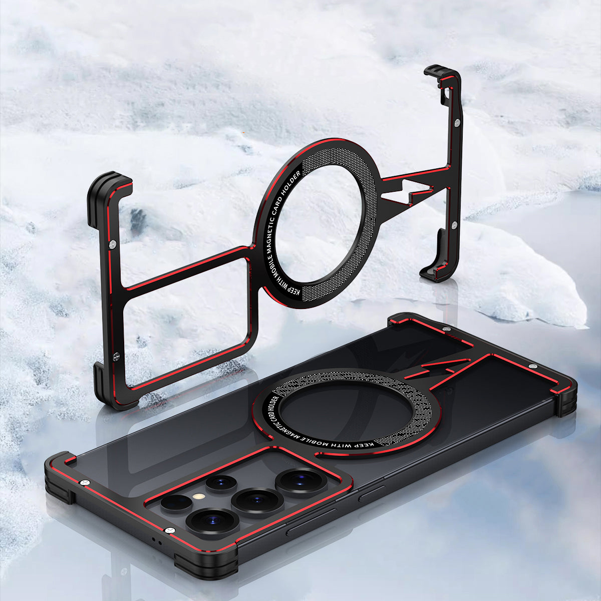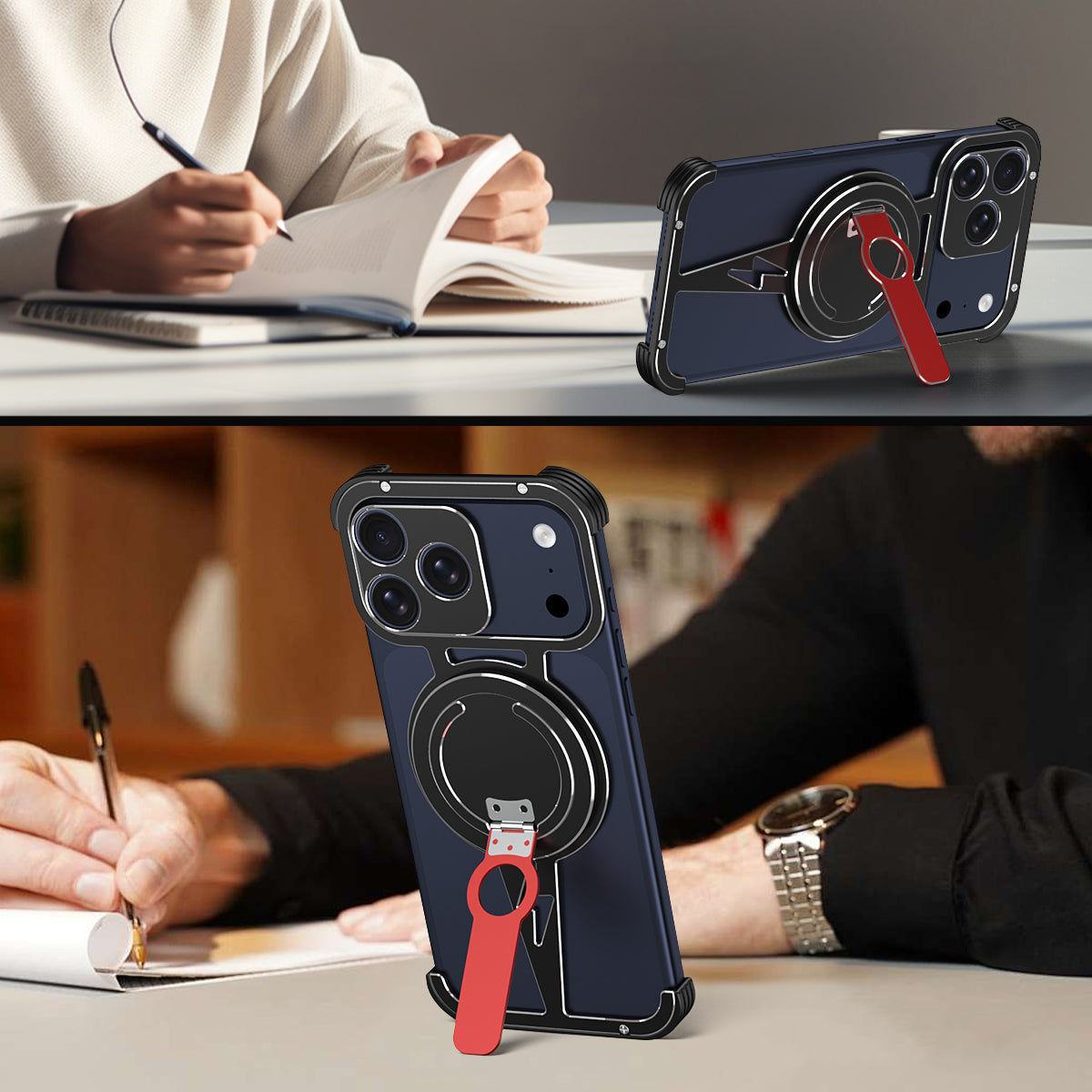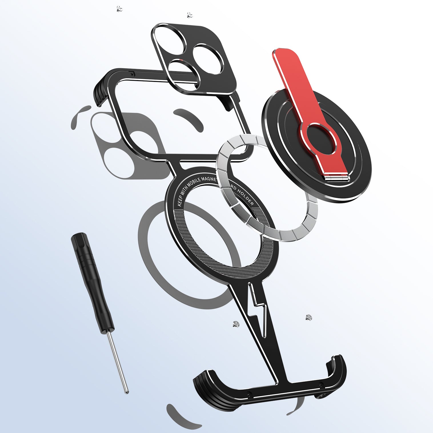 - Aviation aluminum alloy | Magnetic detachable 360° rotating stand | Rotating click-click sound release | Horizontal and vertical support