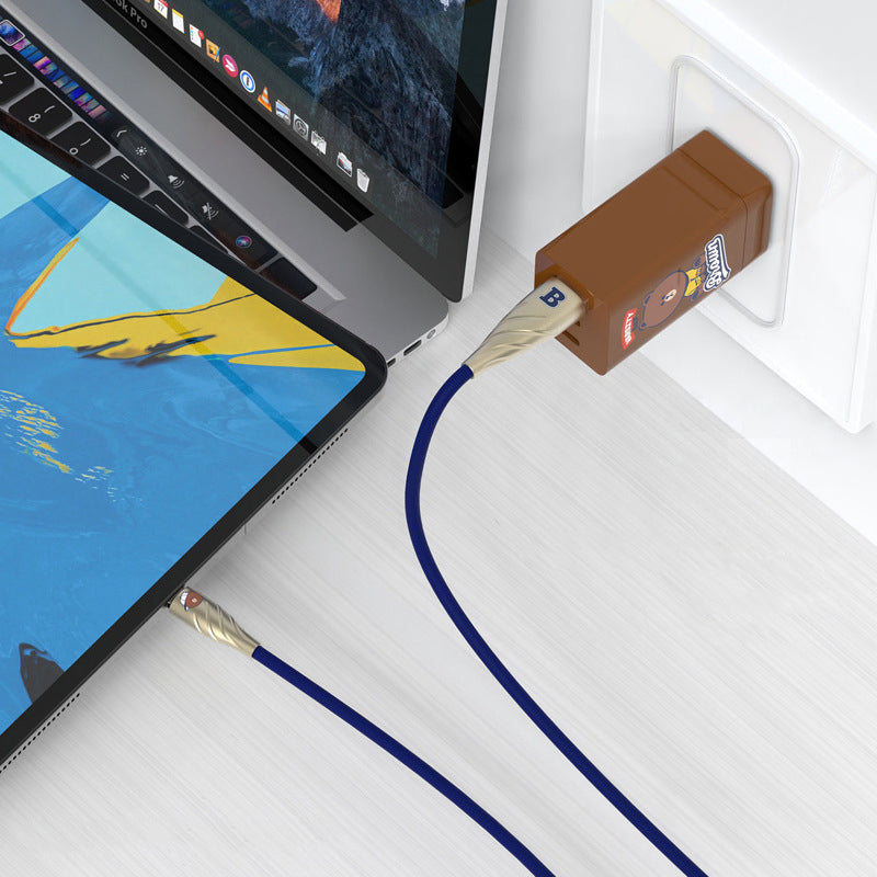 - The Velcro strap with the Line Friends logo can easily organize and store the data cable.