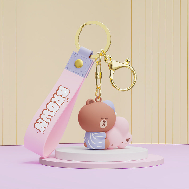 Line Friends Cute Doll Pendant Keychain Ring Anti-lost Strap Silicone Lanyard