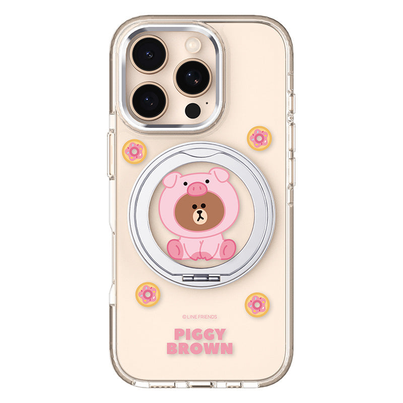 Line Friends MagSafe Pivot Ring Stand Shockproof Transparent Case Cover