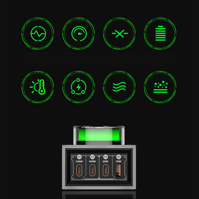- 140W ultra-fast charging, one step ahead. With a maximum total power of 140W, it easily charges high-powered devices like laptops, phones, and tablets simultaneously at high speeds.