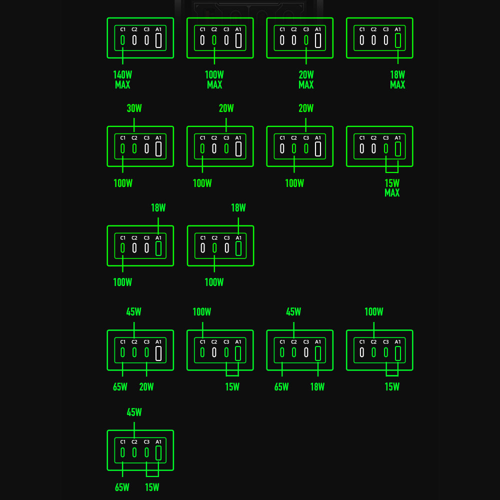 - The C1 port is the powerhouse, delivering 140W output per port, fully powering gaming laptops and MacBook Pro/Air devices, saying goodbye to slow charging.