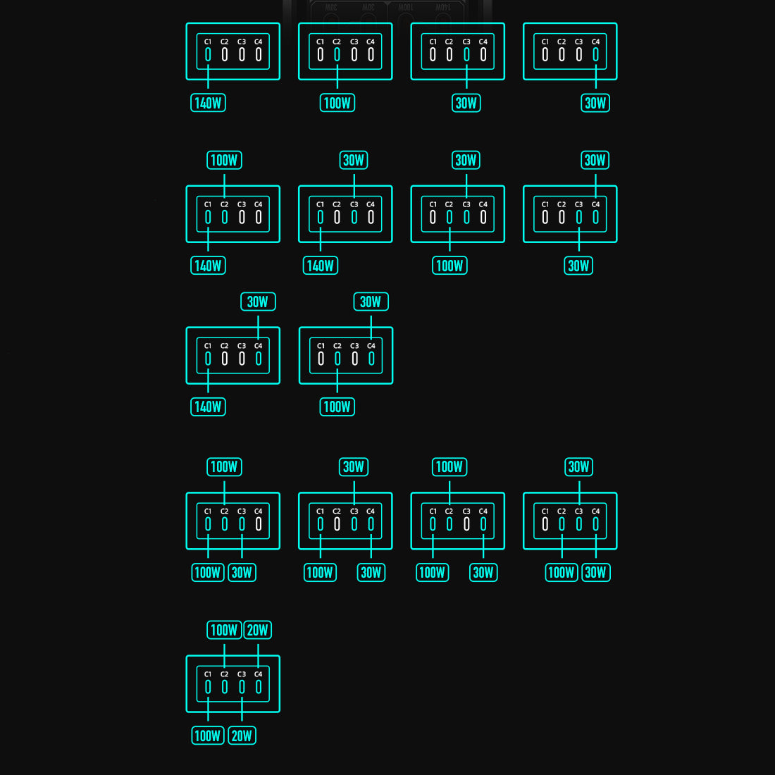 C3 Output: 5V/9V - 3A, 12V - 2.5A, 15V - 2A, 20V - 1.5A (30W Max)