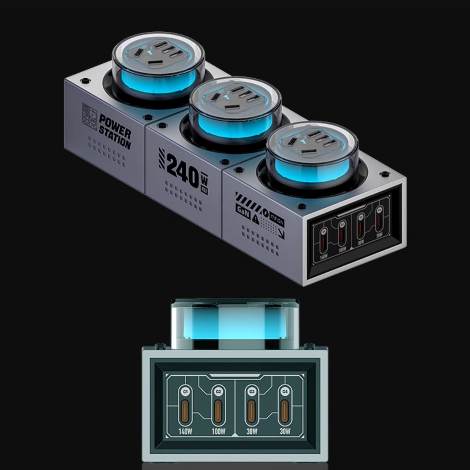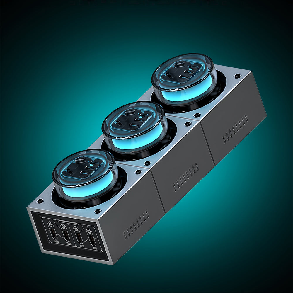 - 140W + 100W, fast charging two laptops simultaneously, equivalent to having a 140W charger + a 100W charger + an outlet.
