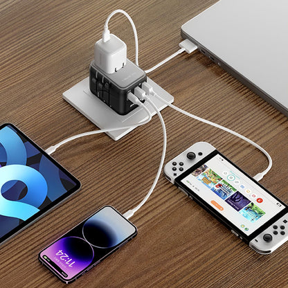 Fast charging universal travel charger with 2 USB-A ports and 1 USB-C port to charge multiple devices at the same time. Its maximum output power of 20W can provide faster charging speed for compatible devices. In addition, it has multiple safety protection functions to ensure the safety of charging.