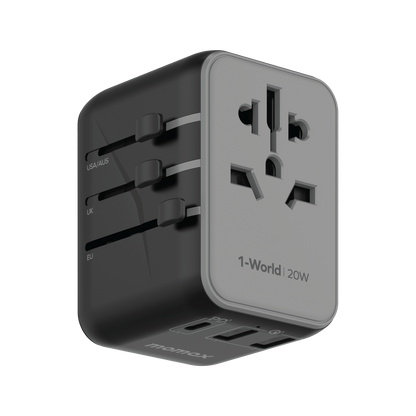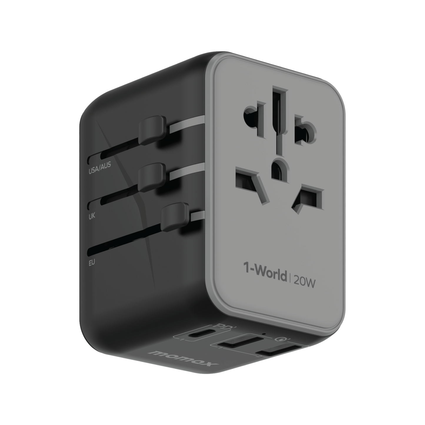 MOMAX 1-World 20W 3-Port + AC Charger Universal Travel Adapter