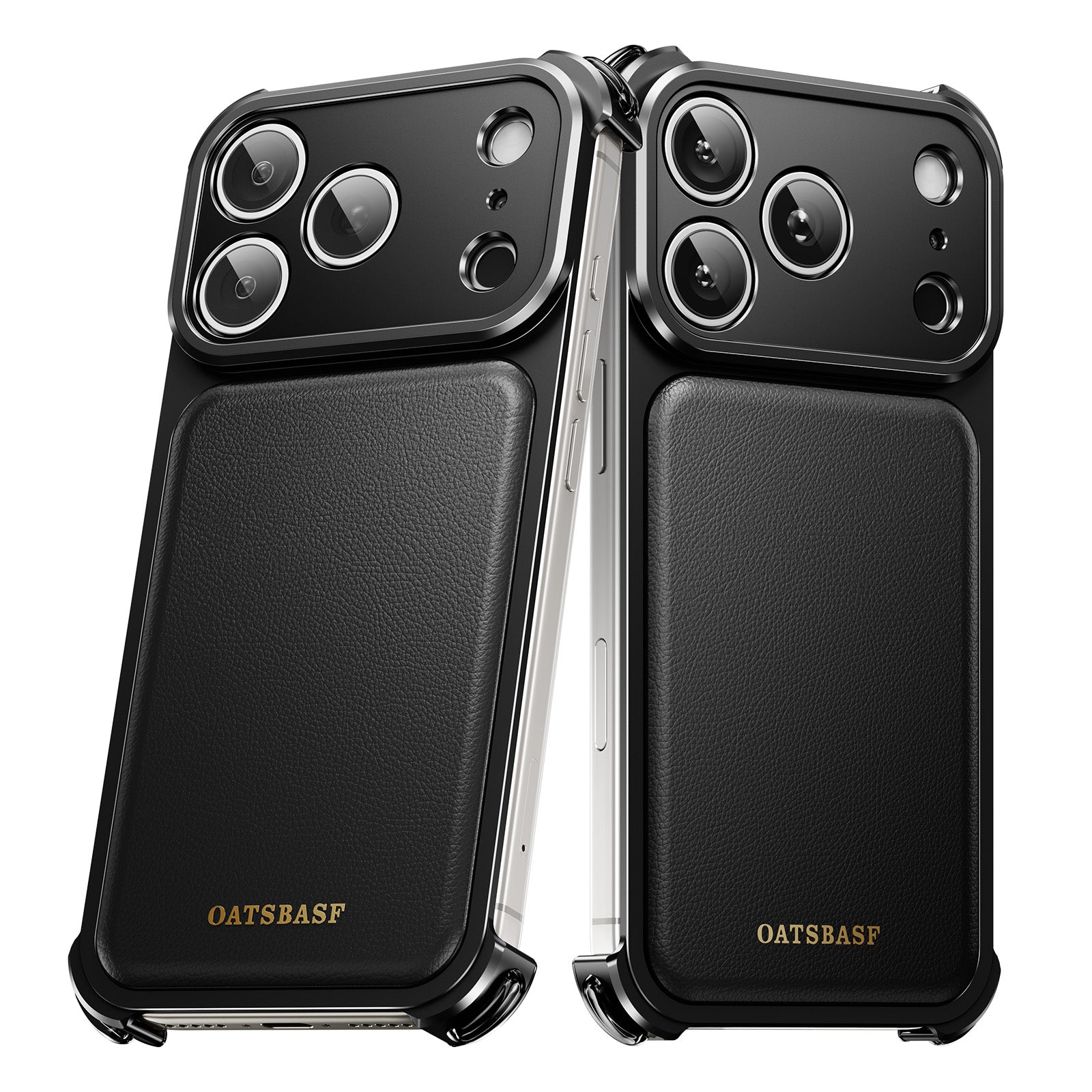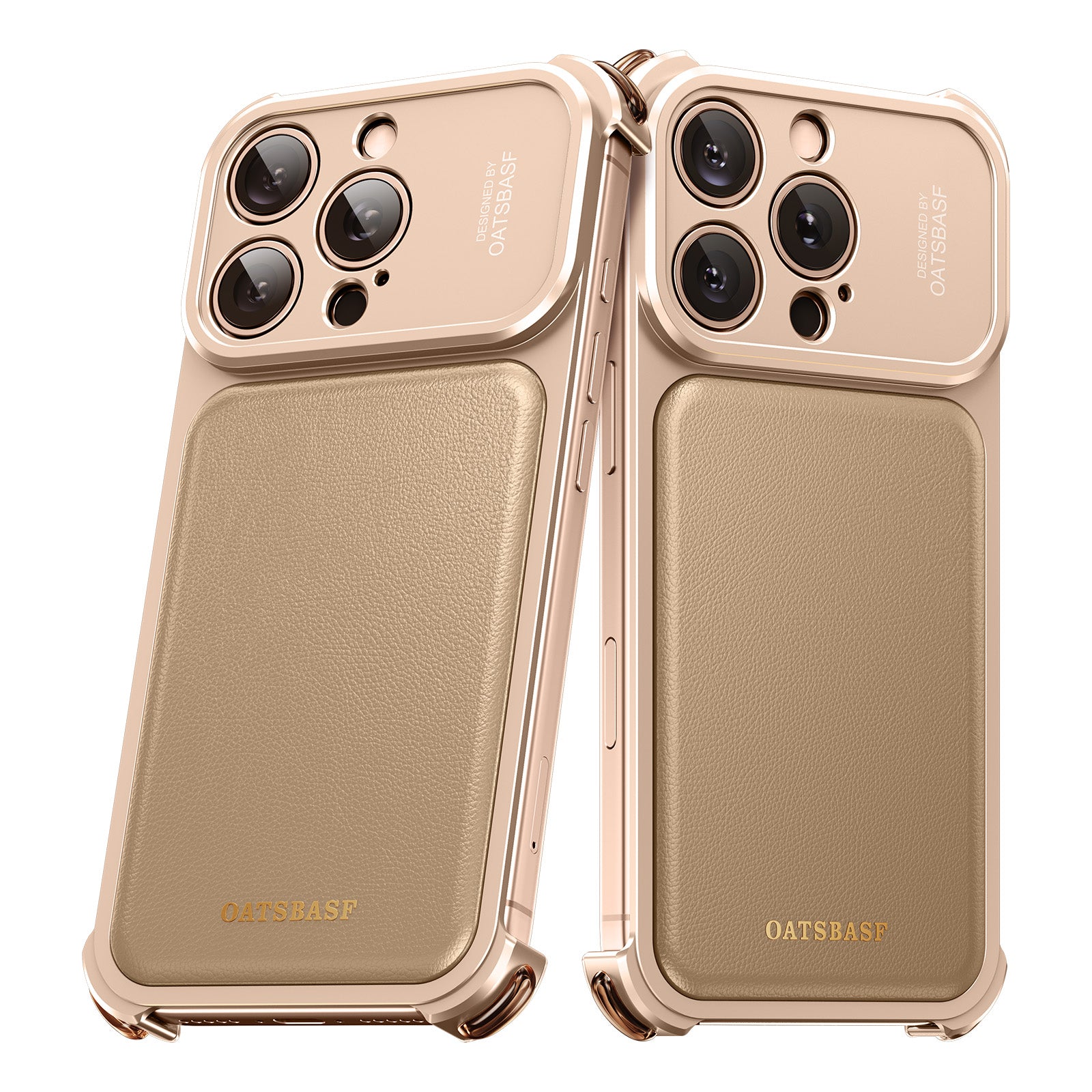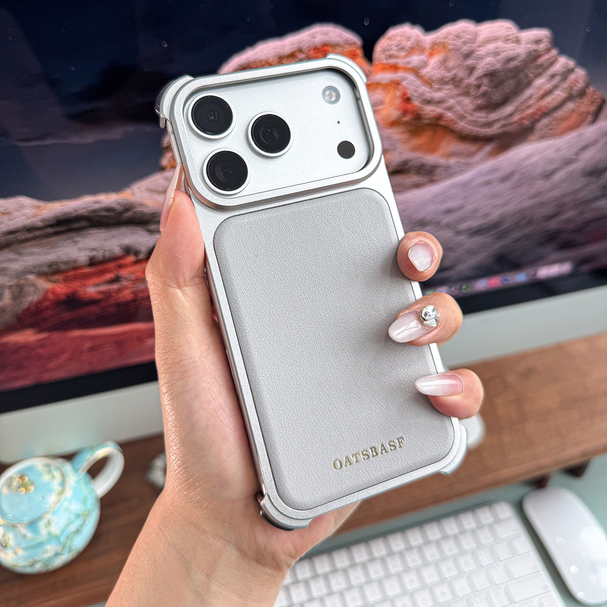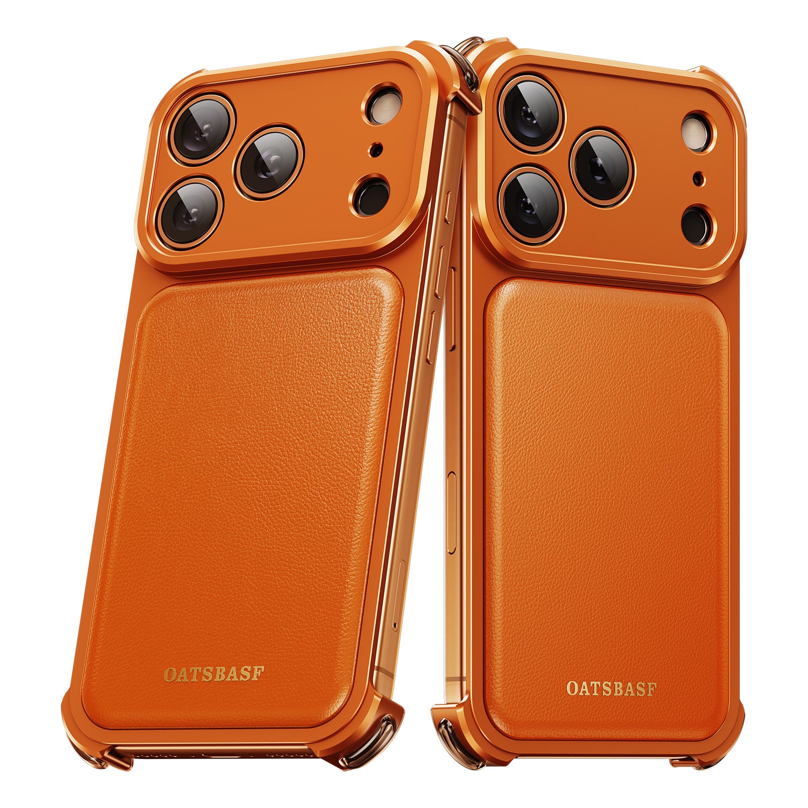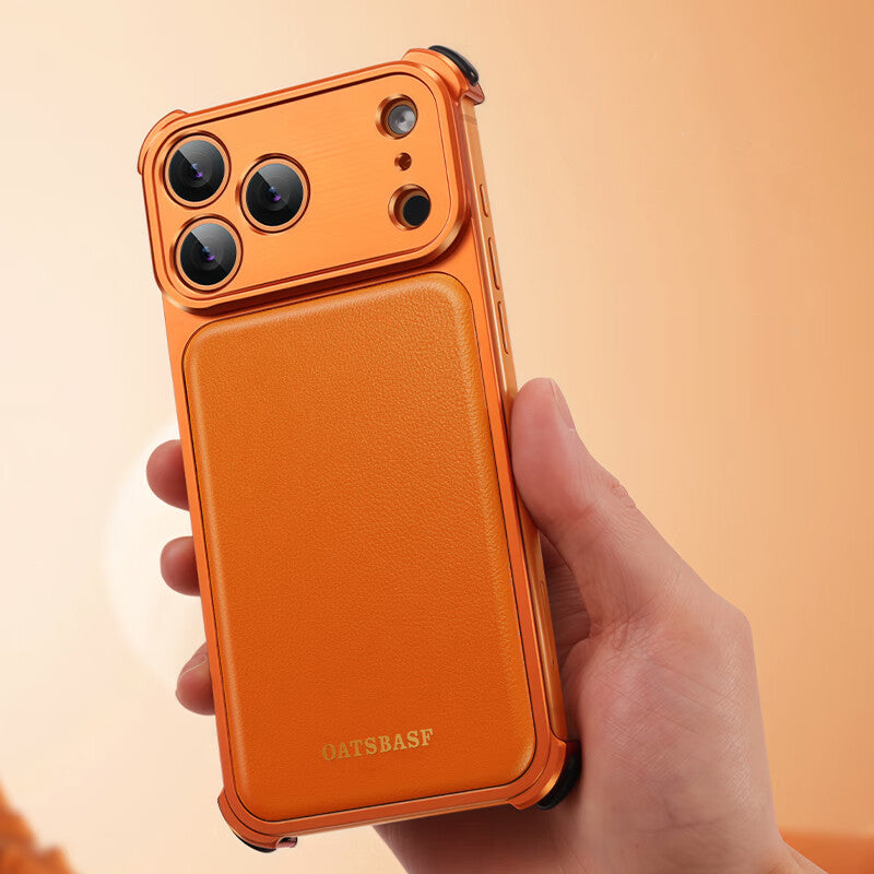 Oatsbasf Armour MagSafe Aluminum Bumper Genuine Leather Air Cushion Shockproof Case Cover
