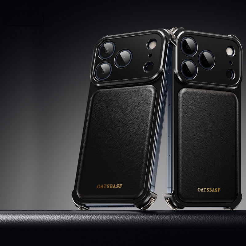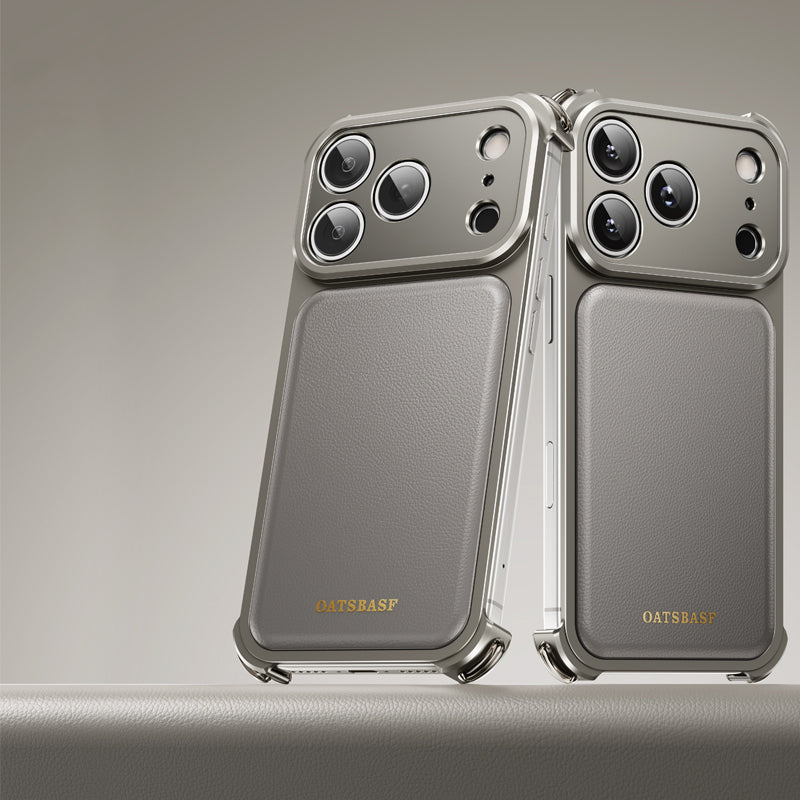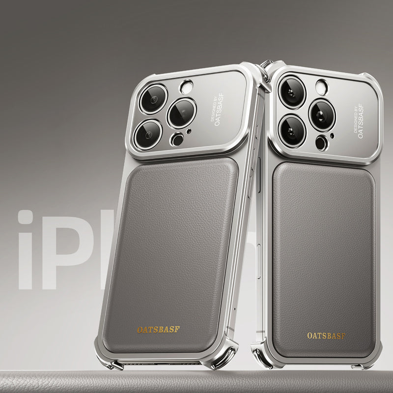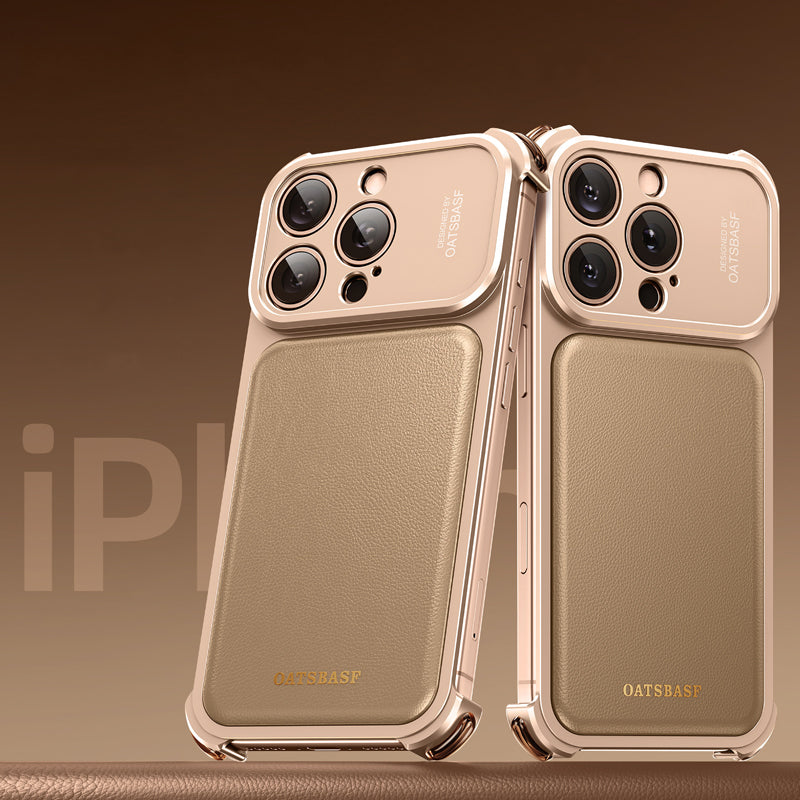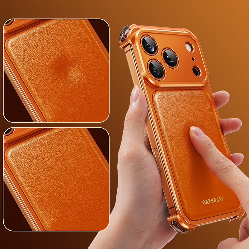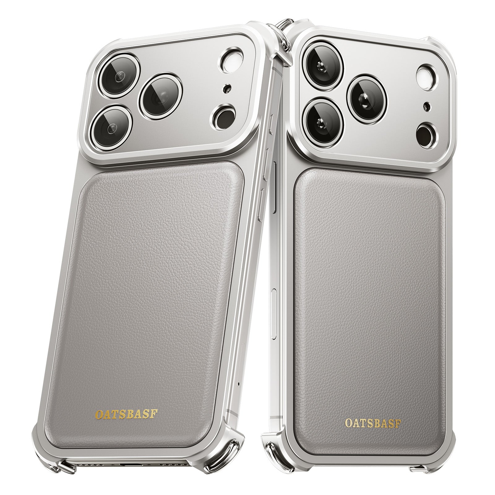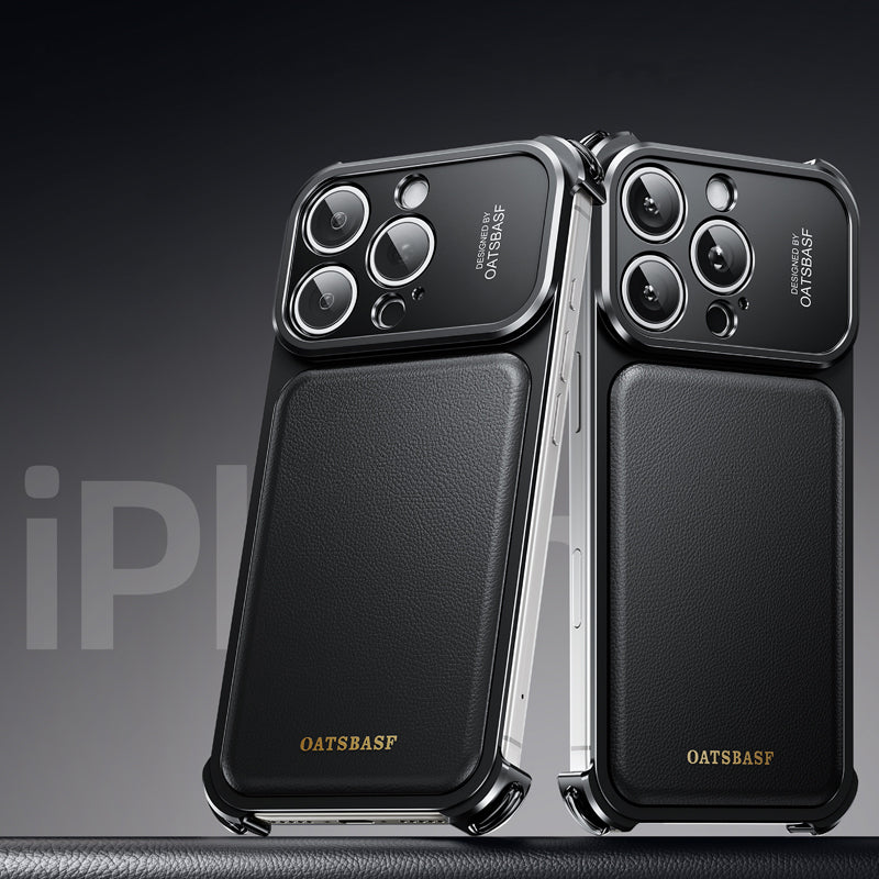 Oatsbasf Armour MagSafe Aluminum Bumper Genuine Leather Air Cushion Shockproof Case Cover