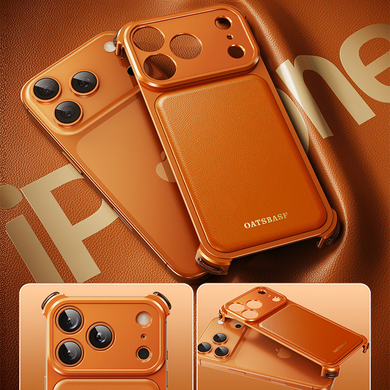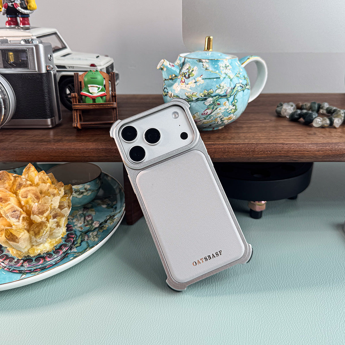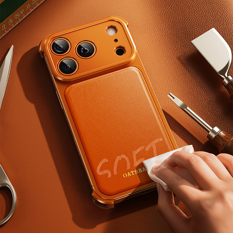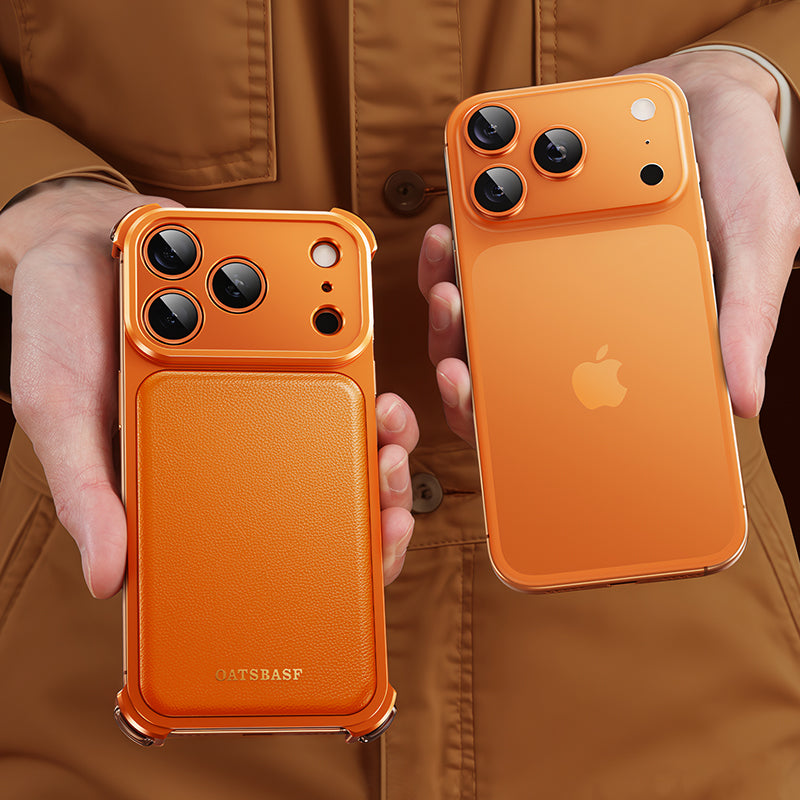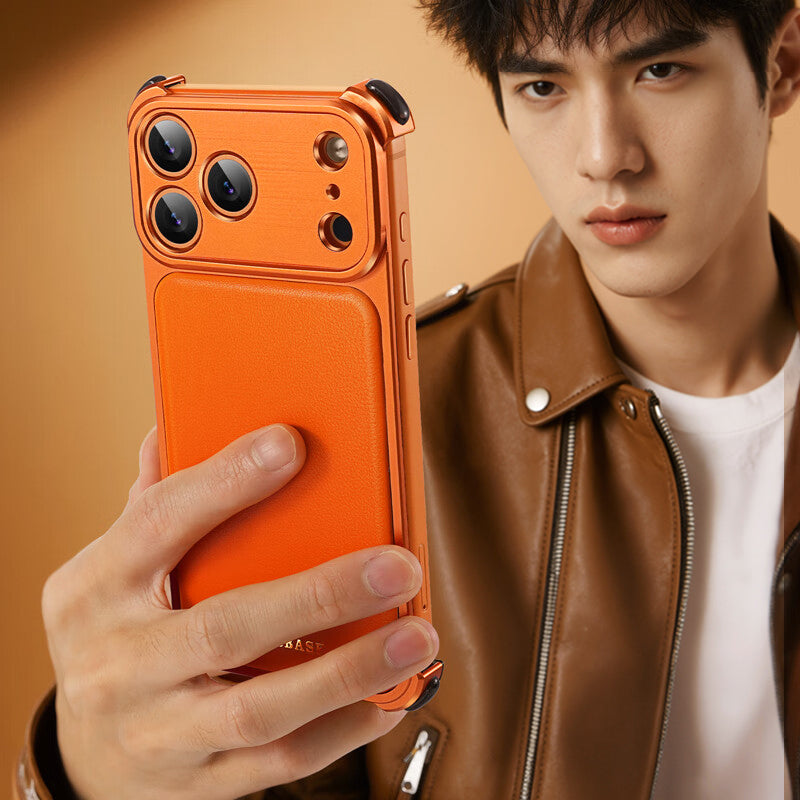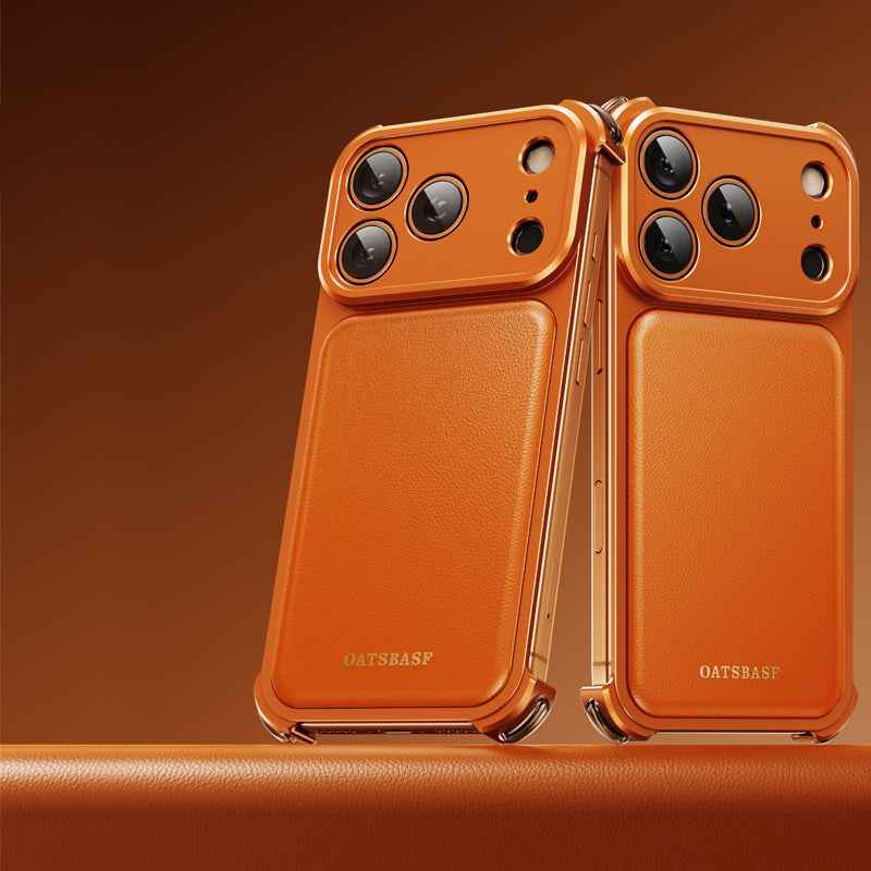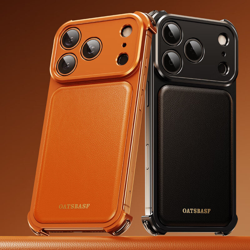 Oatsbasf Armour MagSafe Aluminum Bumper Genuine Leather Air Cushion Shockproof Case Cover