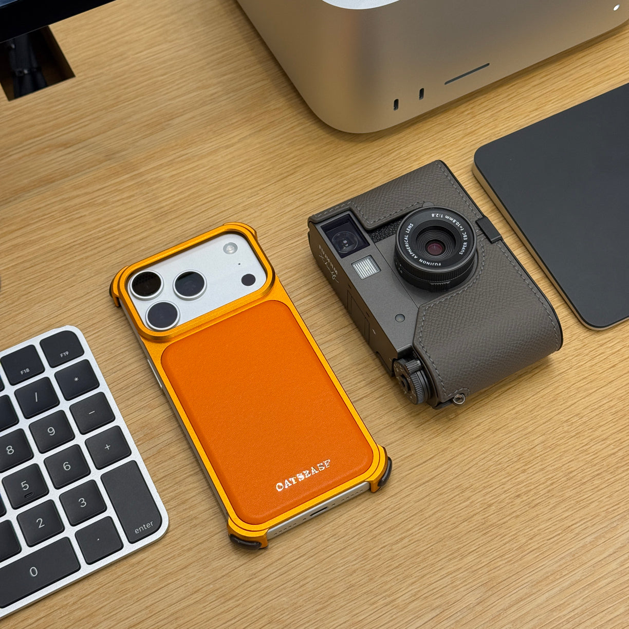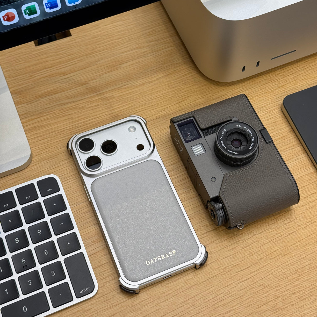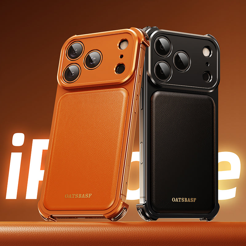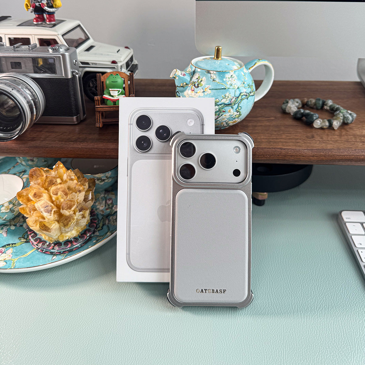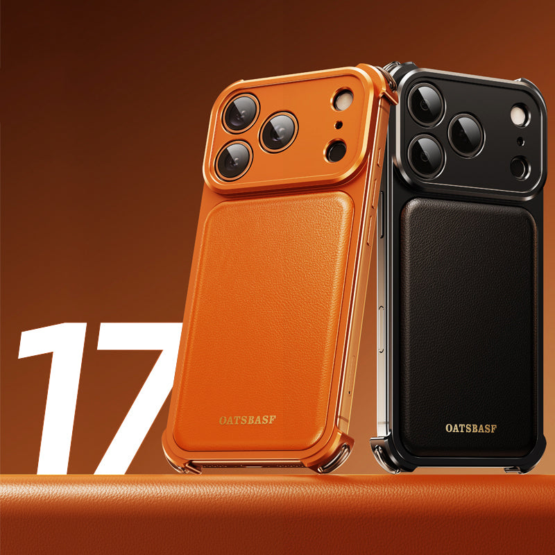Oatsbasf Armour MagSafe Aluminum Bumper Genuine Leather Air Cushion Shockproof Case Cover