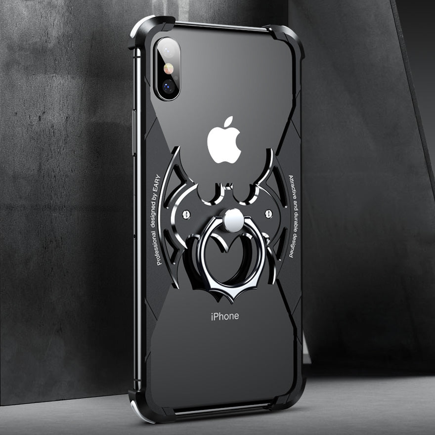 Oatsbasf Batman Airbag Bumper Metal Case Cover with Bat Ring Holder Bracket
