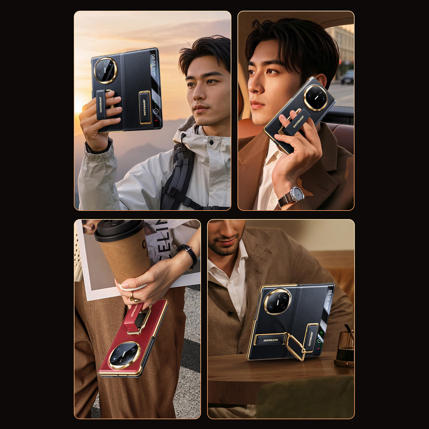 Oatsbasf 360° Rotatable Kickstand Strap Wristband Shockproof Leather Case Cover