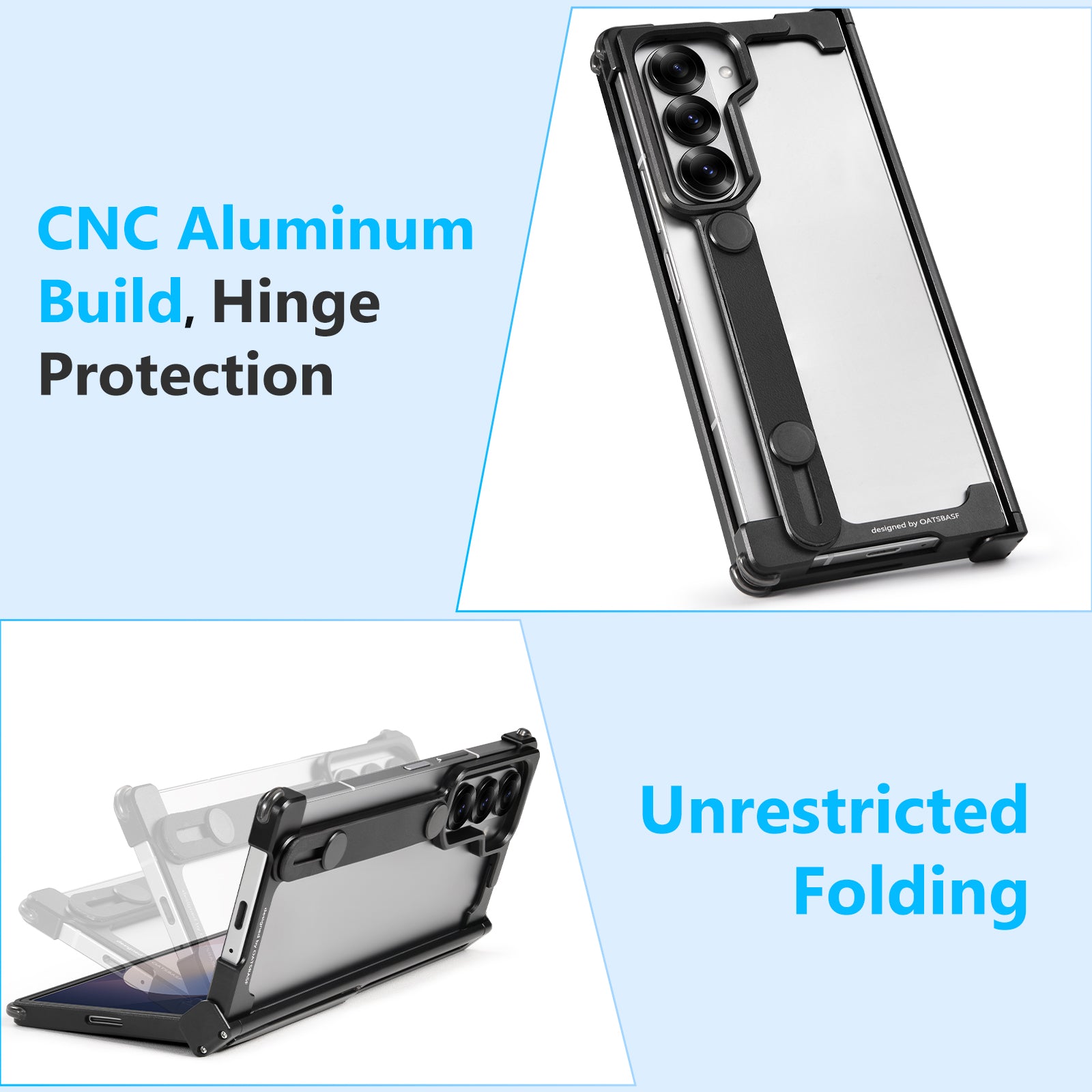 Oatsbasf Hidden Stand & Secure Grip Military-Grade Shockproof Frameless Metal Case Cover