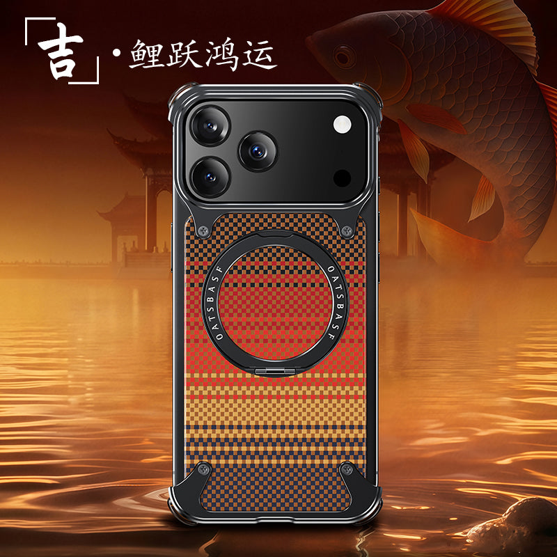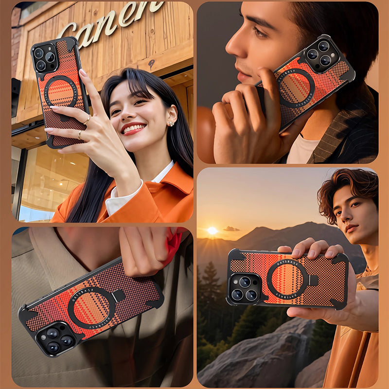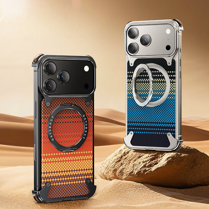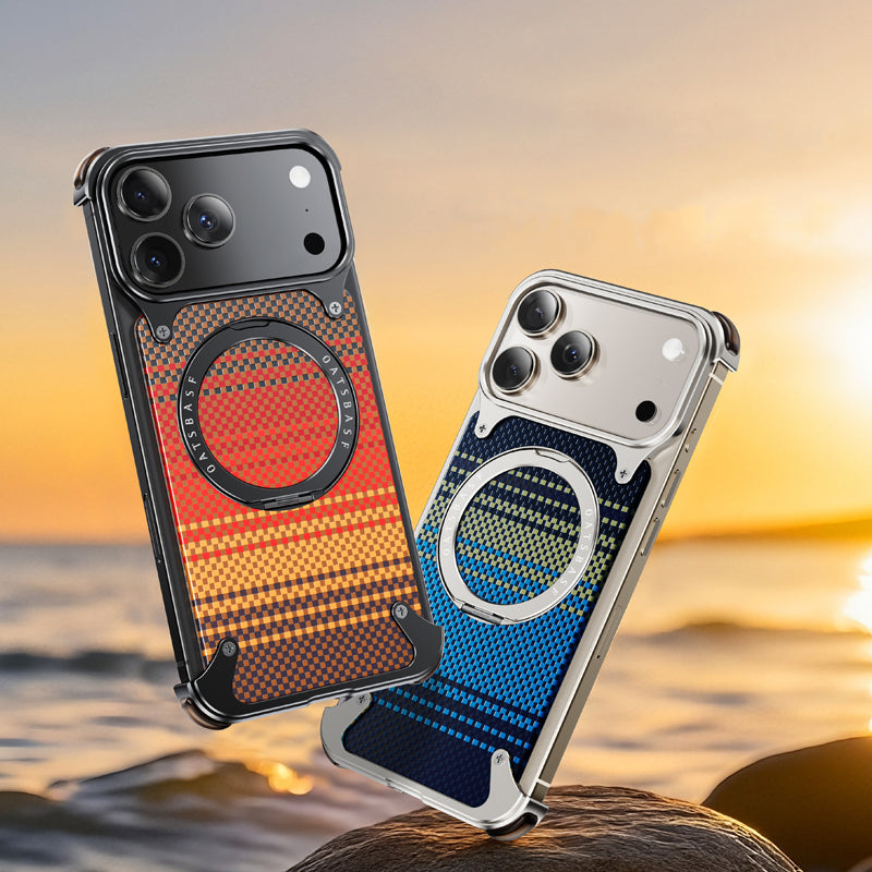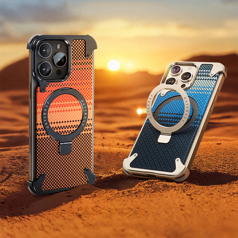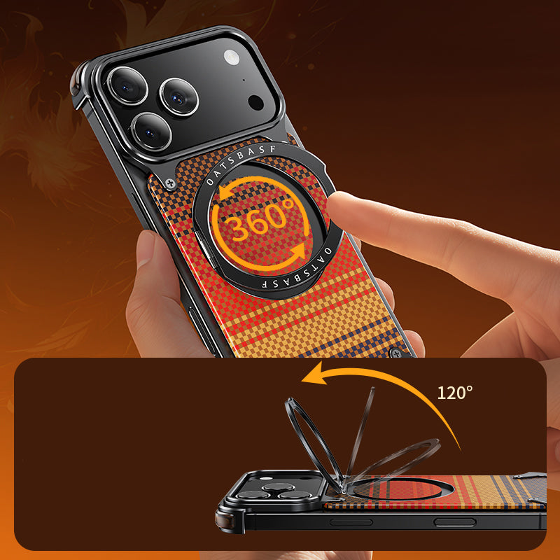 Oatsbasf MagSafe Pivot Ring Stand Air Cushion Artistic Carbon Fiber Texture Back Metal Case Cover