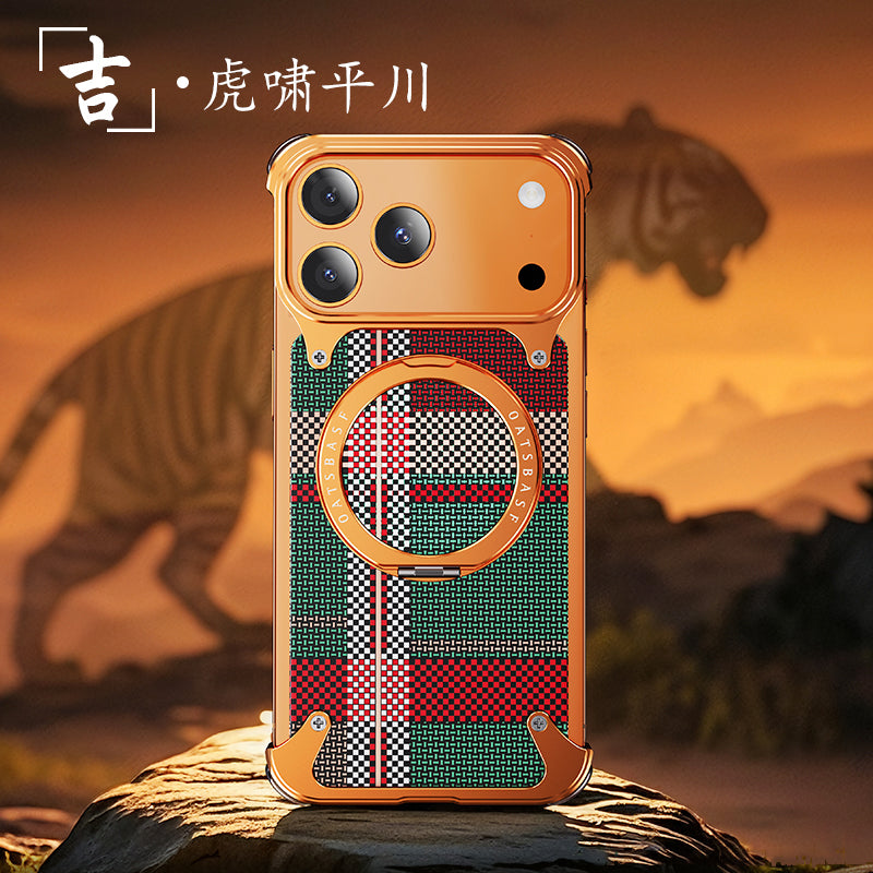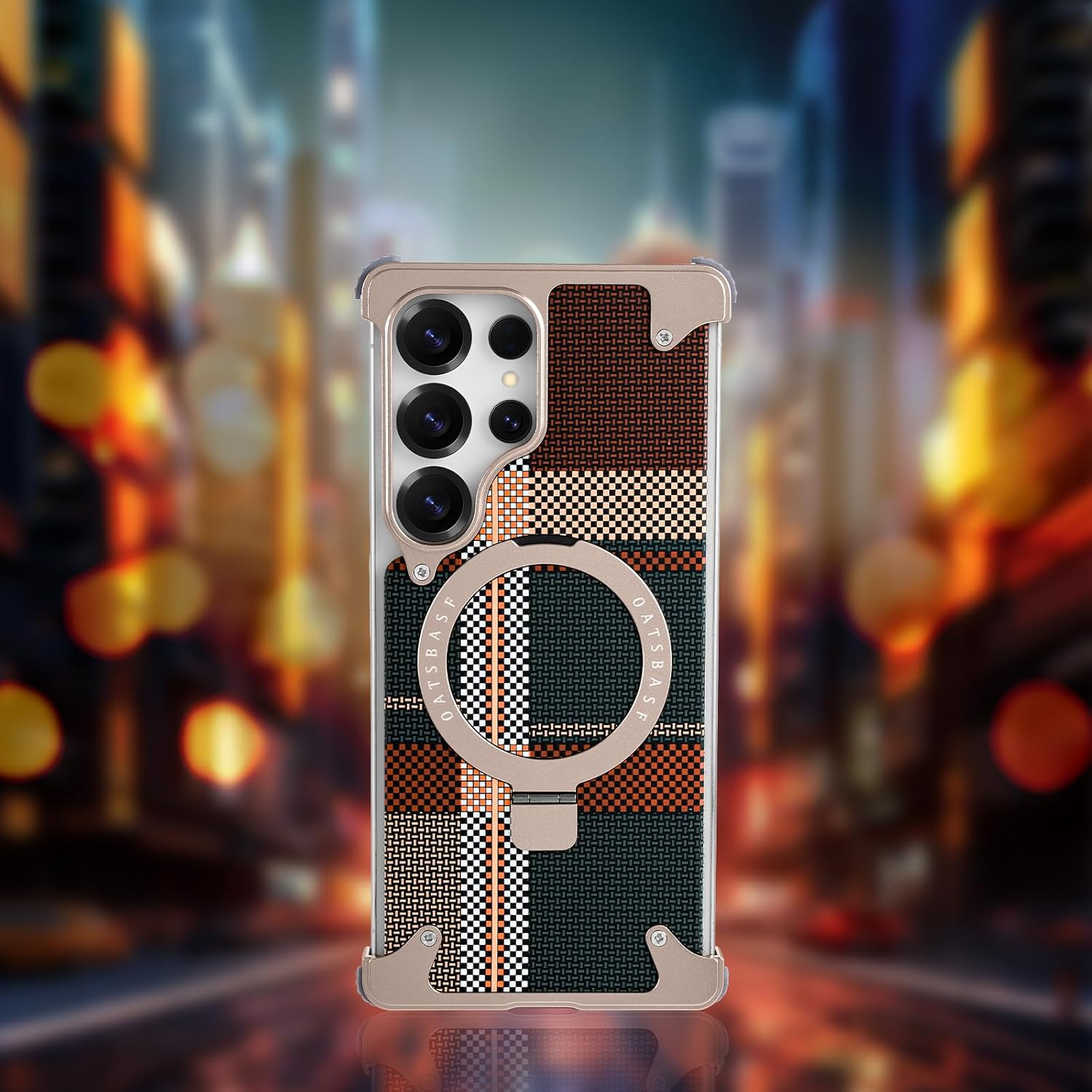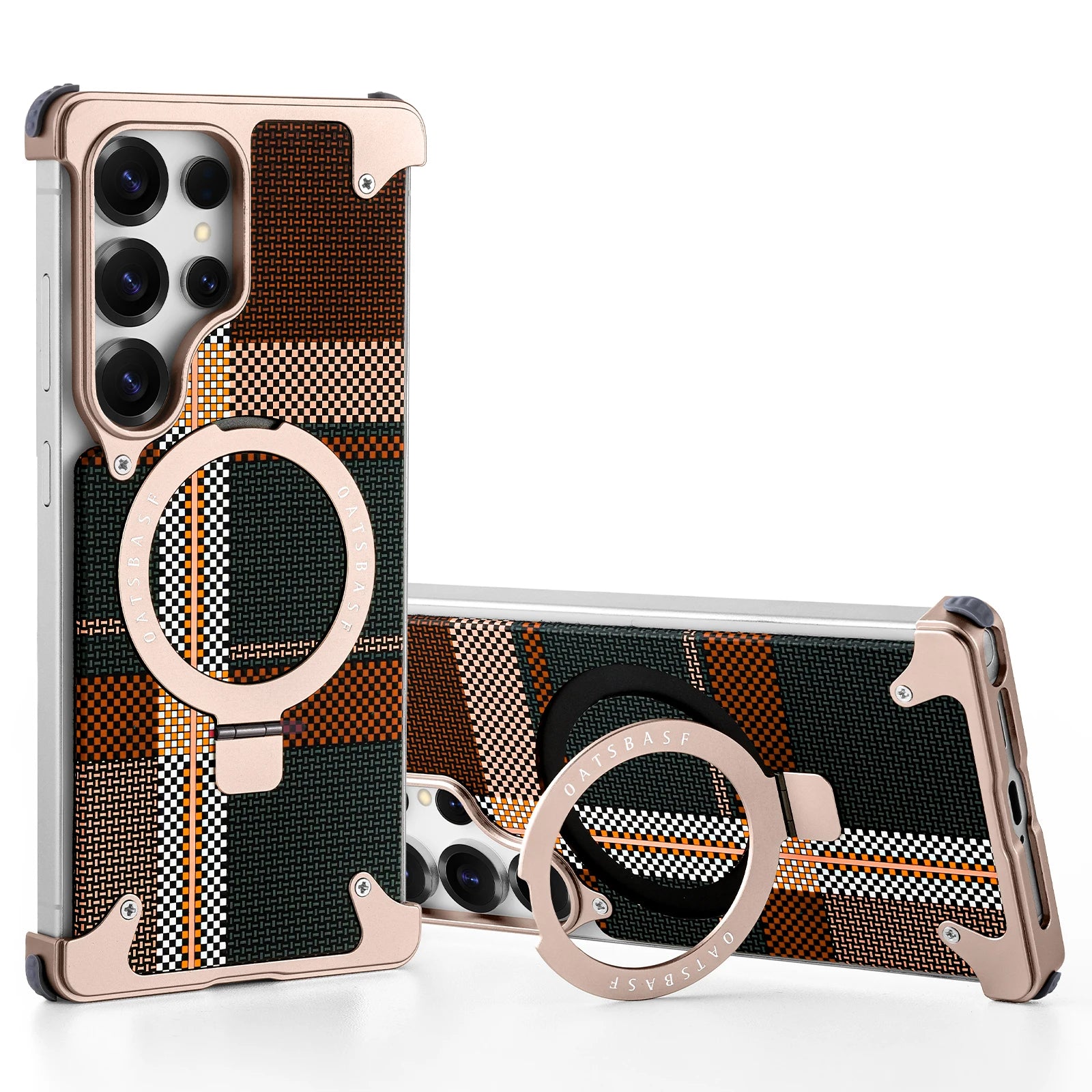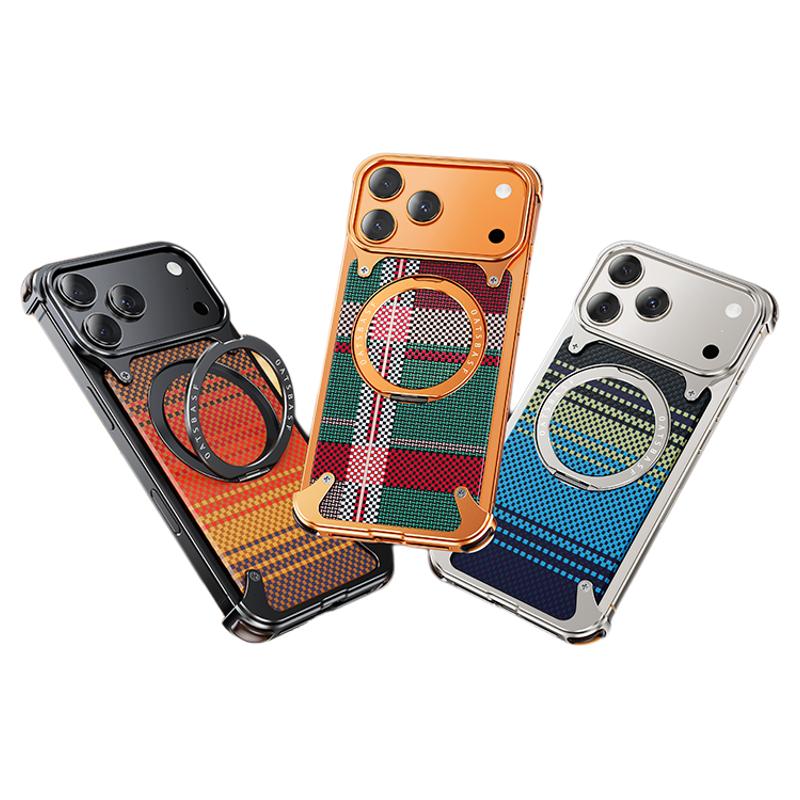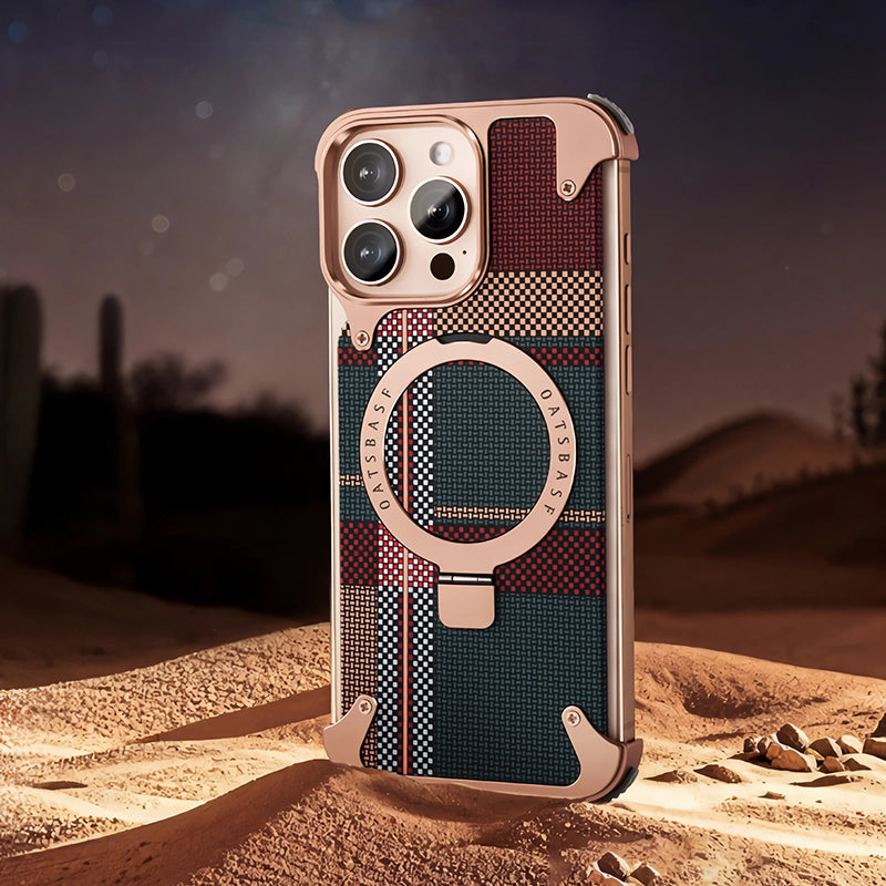 Oatsbasf MagSafe Pivot Ring Stand Air Cushion Artistic Carbon Fiber Texture Back Metal Case Cover