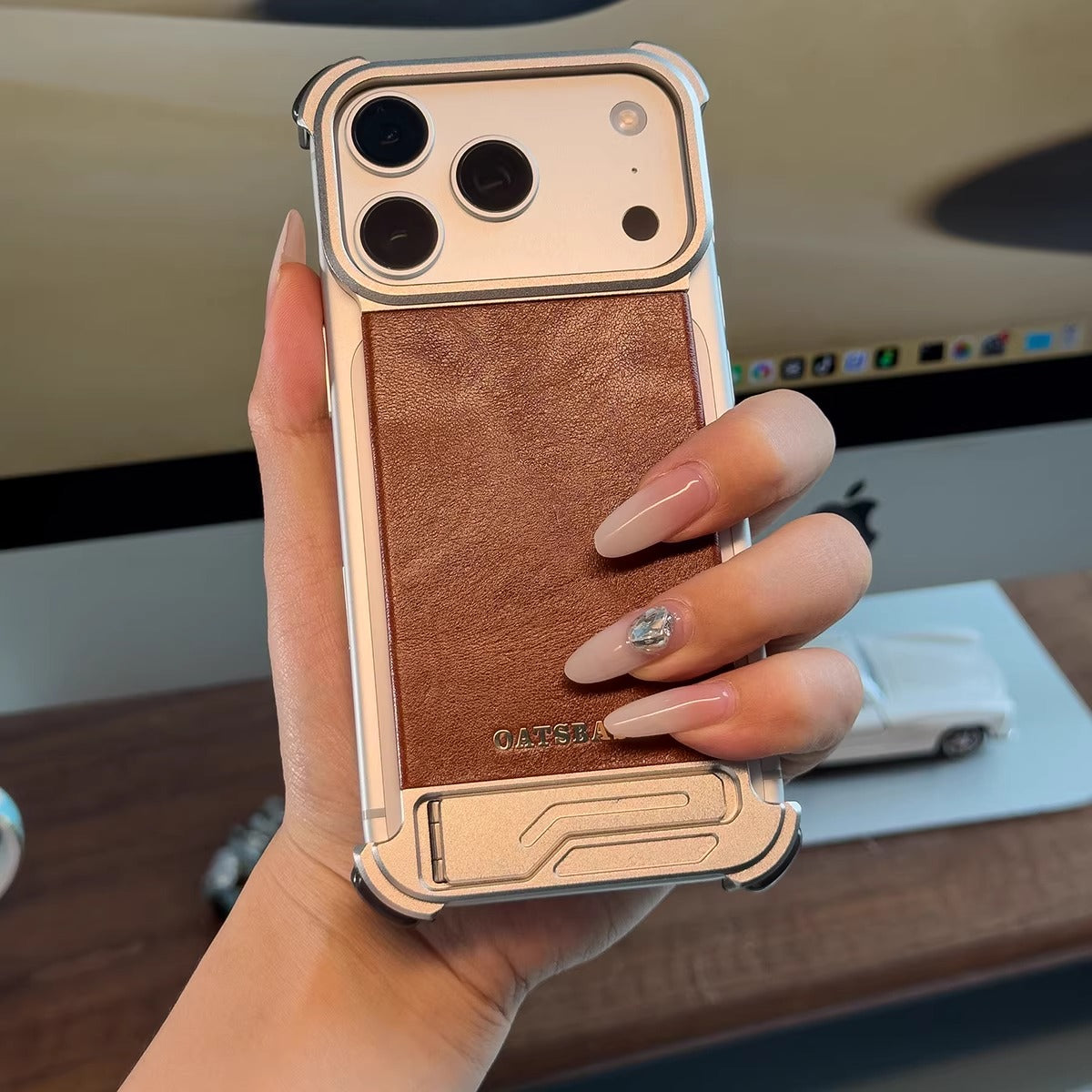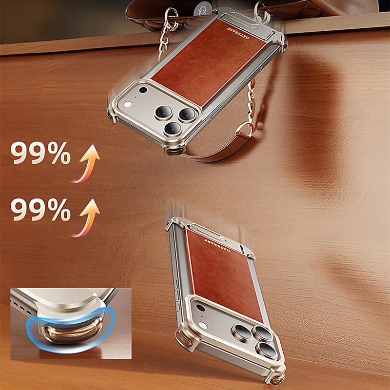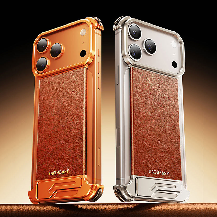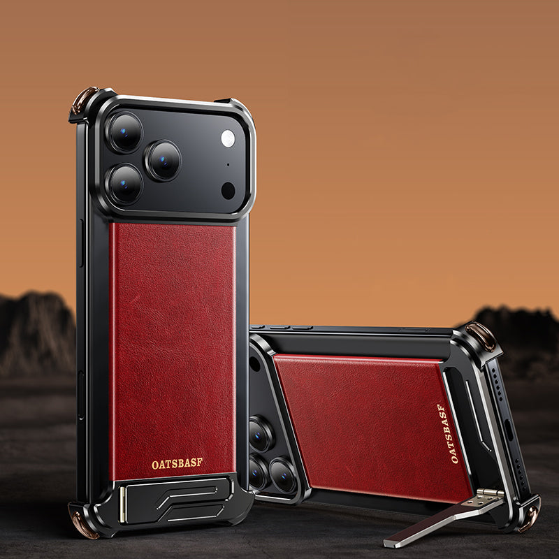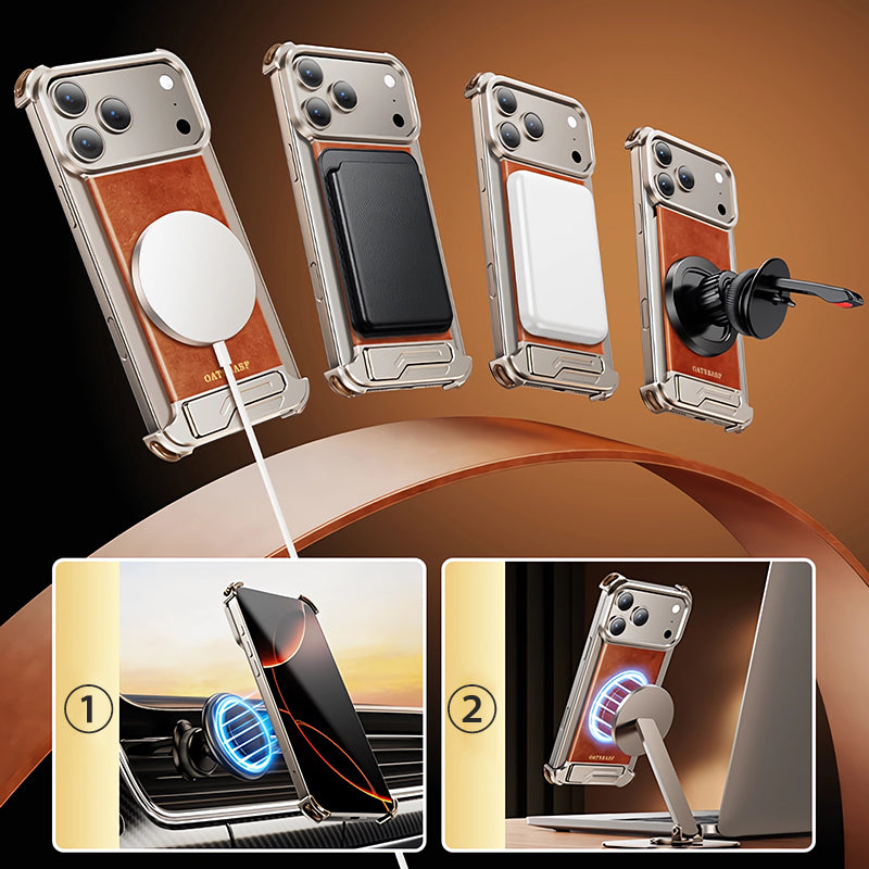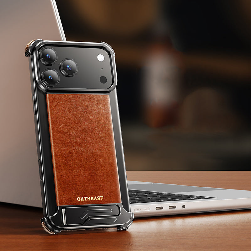 Oatsbasf Yiliupi MagSafe Hidden Stand Genuine Leather Frameless Metal Case Cover