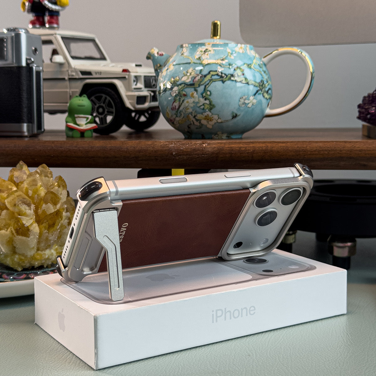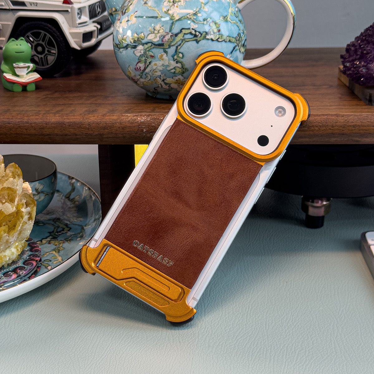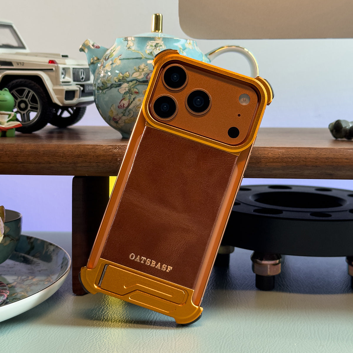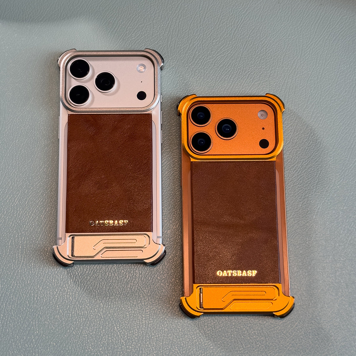 Oatsbasf Yiliupi MagSafe Hidden Stand Genuine Leather Frameless Metal Case Cover