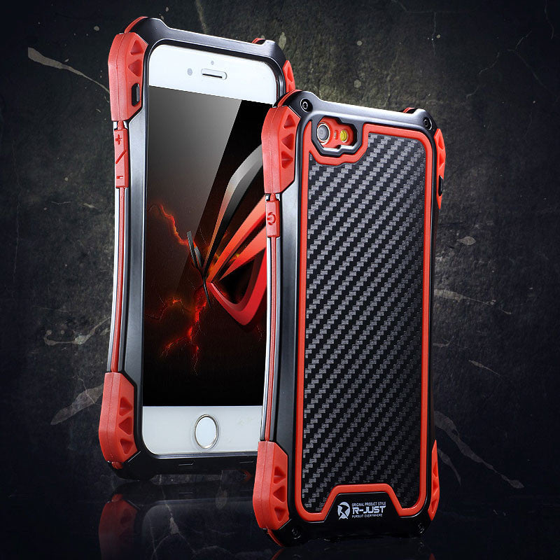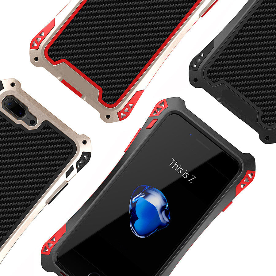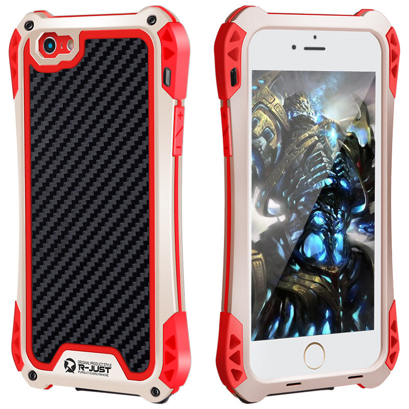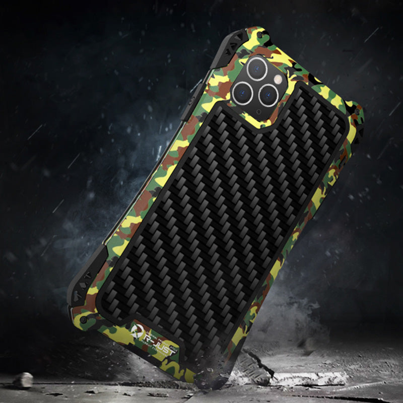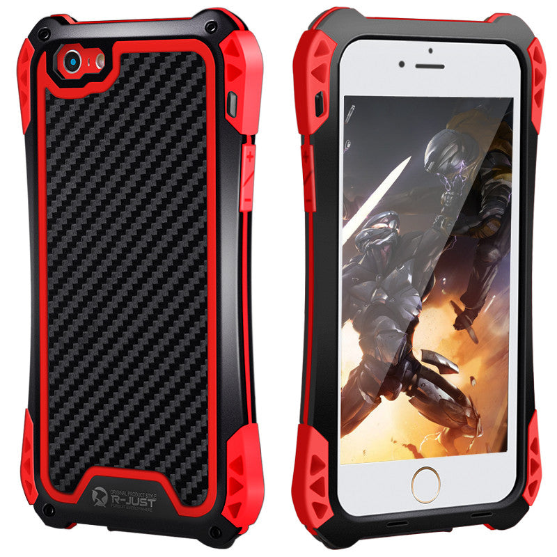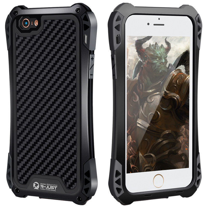 R-Just Amira Heavy Duty Dirtproof Shockproof Rainproof Aluminum Metal Frame TPU Bumper Carbon Fiber Back Cover Case