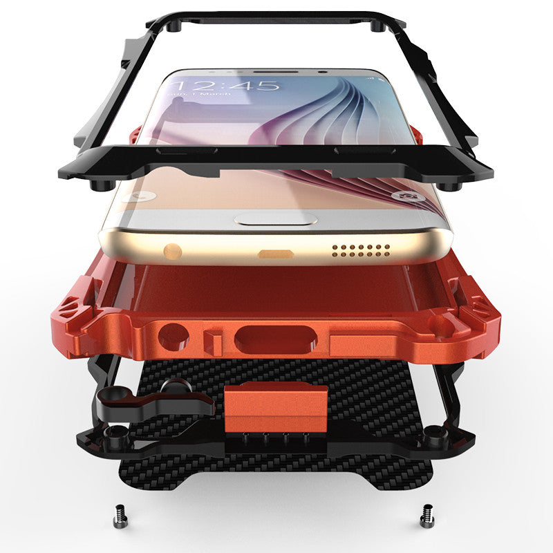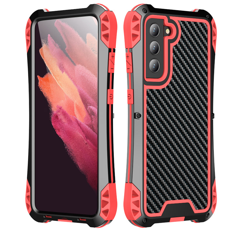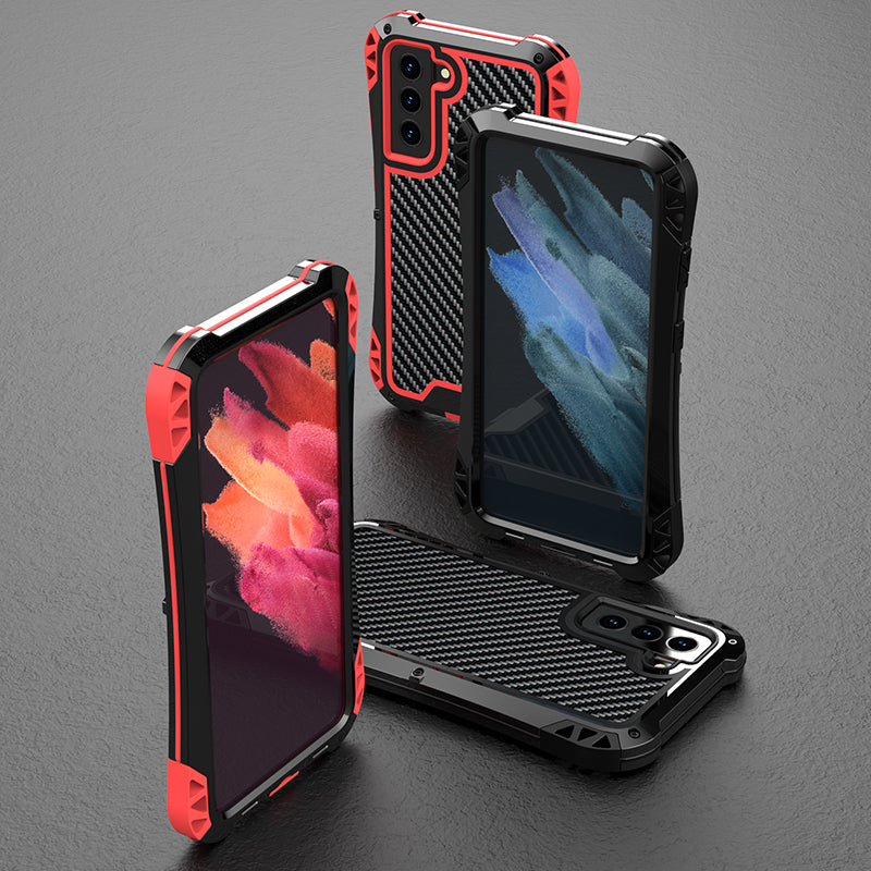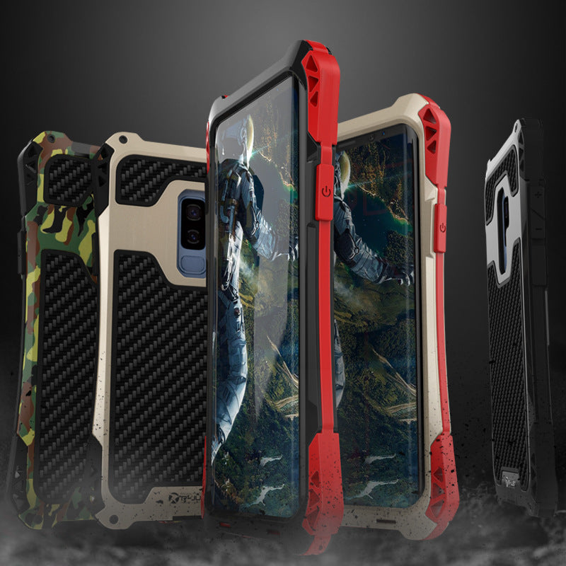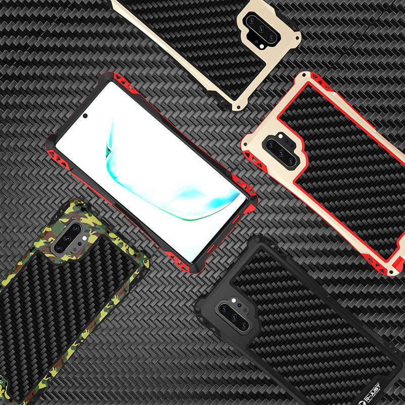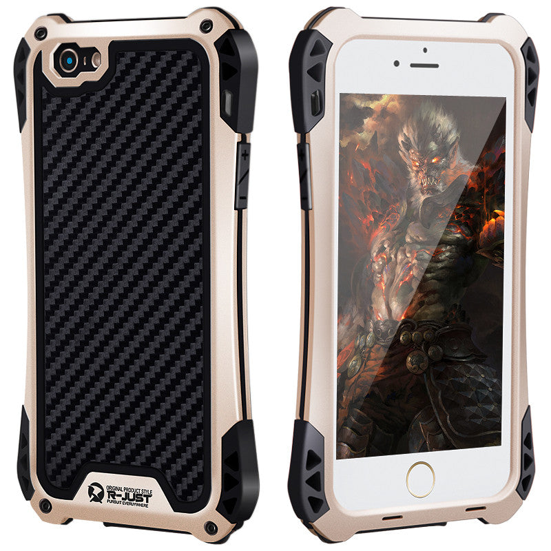 R-Just Amira Heavy Duty Dirtproof Shockproof Rainproof Aluminum Metal Frame TPU Bumper Carbon Fiber Back Cover Case