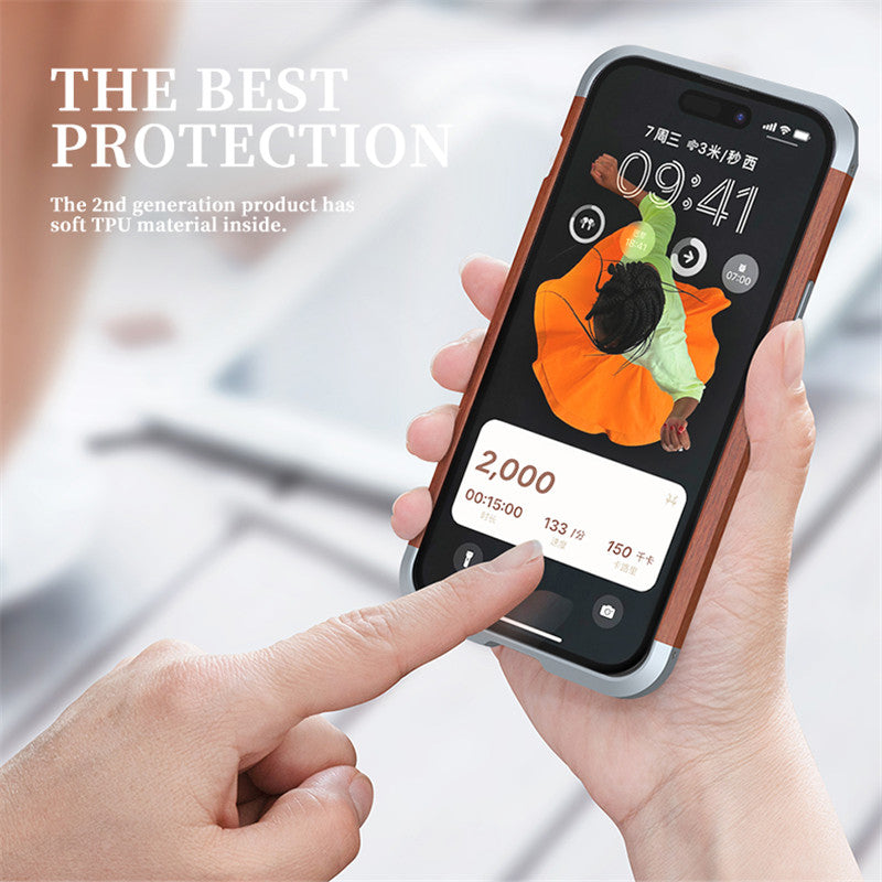 R-Just IRONWOOD II Light Slim Timber Aluminum Metal Wood Bumper Case Cover