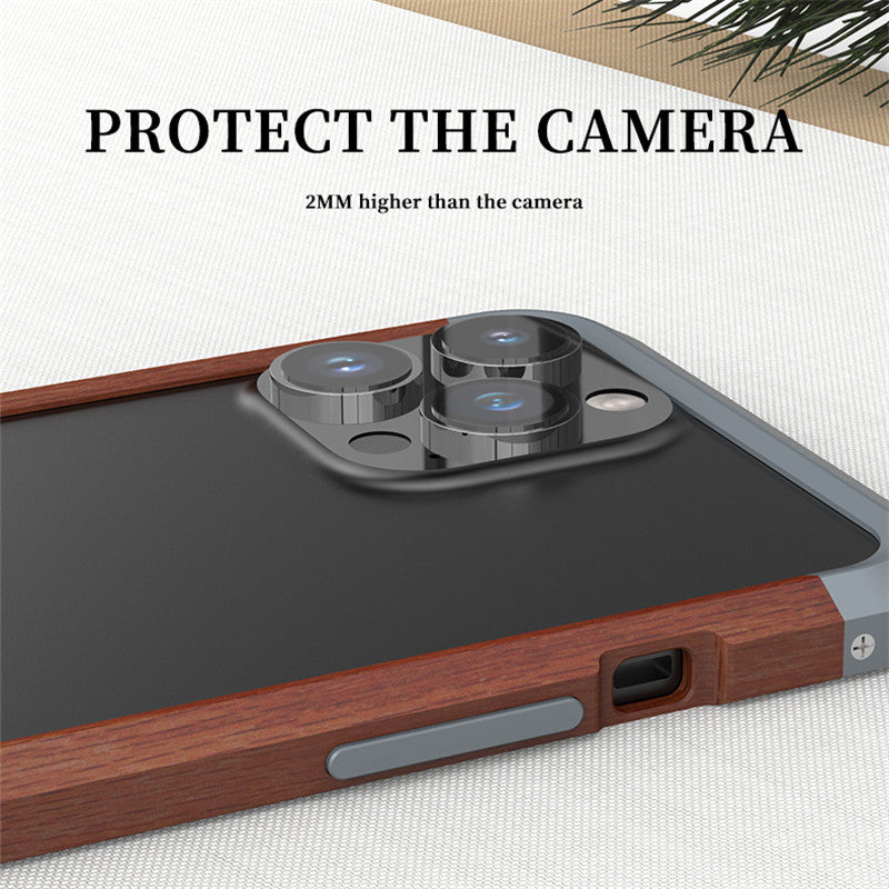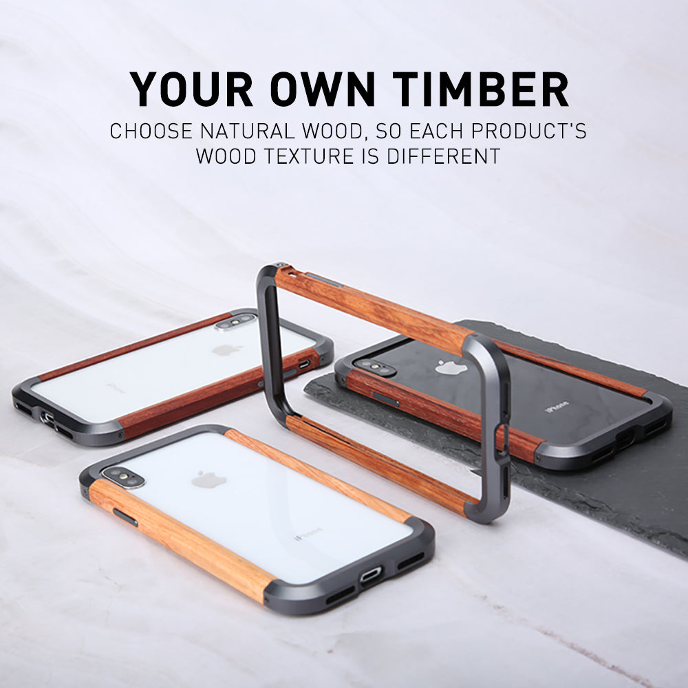 - Metallic timber wood case. Smoothing facade and perfect finishment by crafts, showing elegant fashion charisma with iPhone armor phone case.