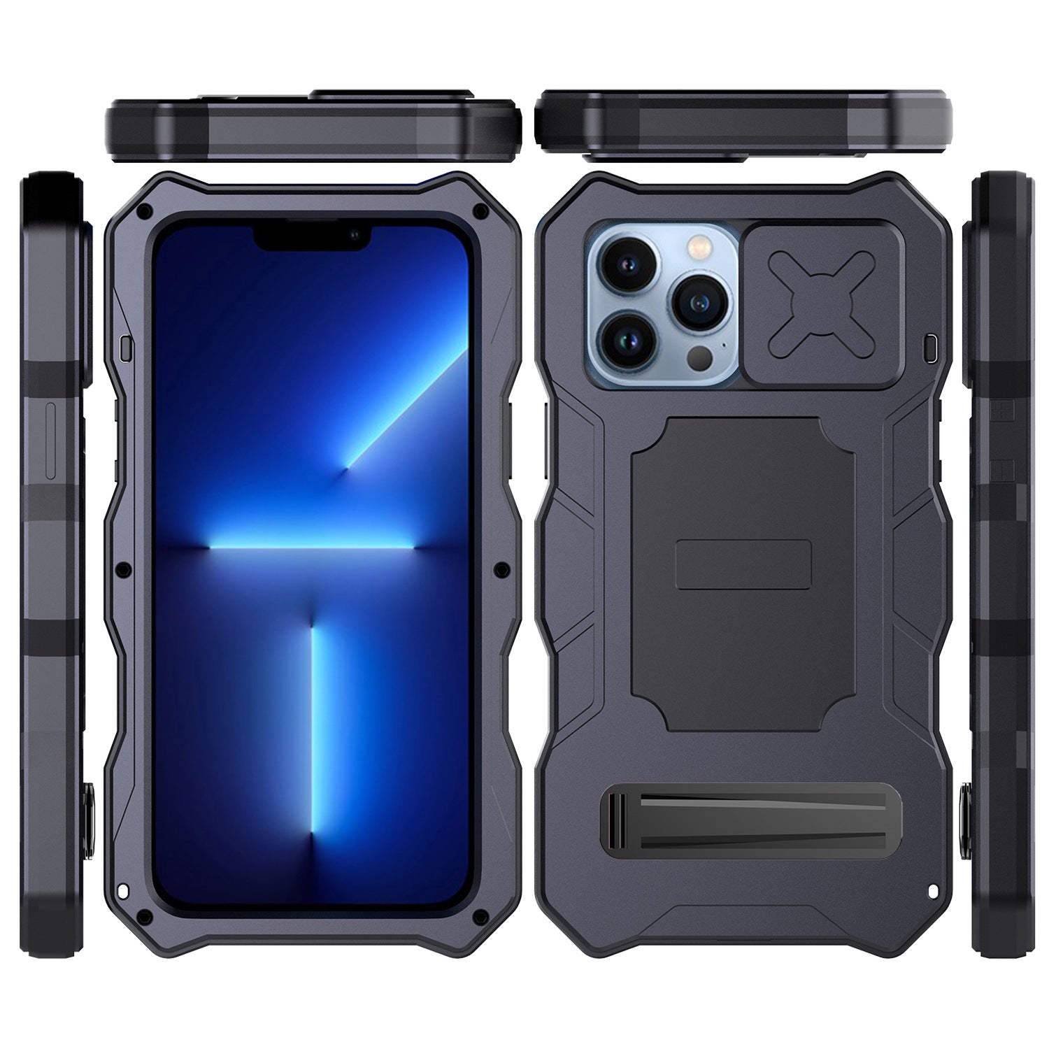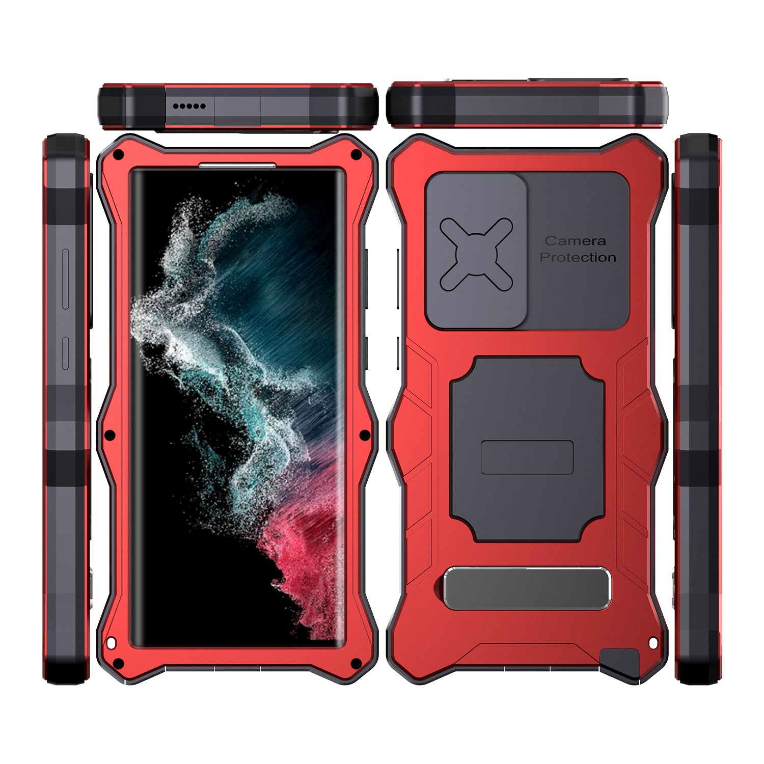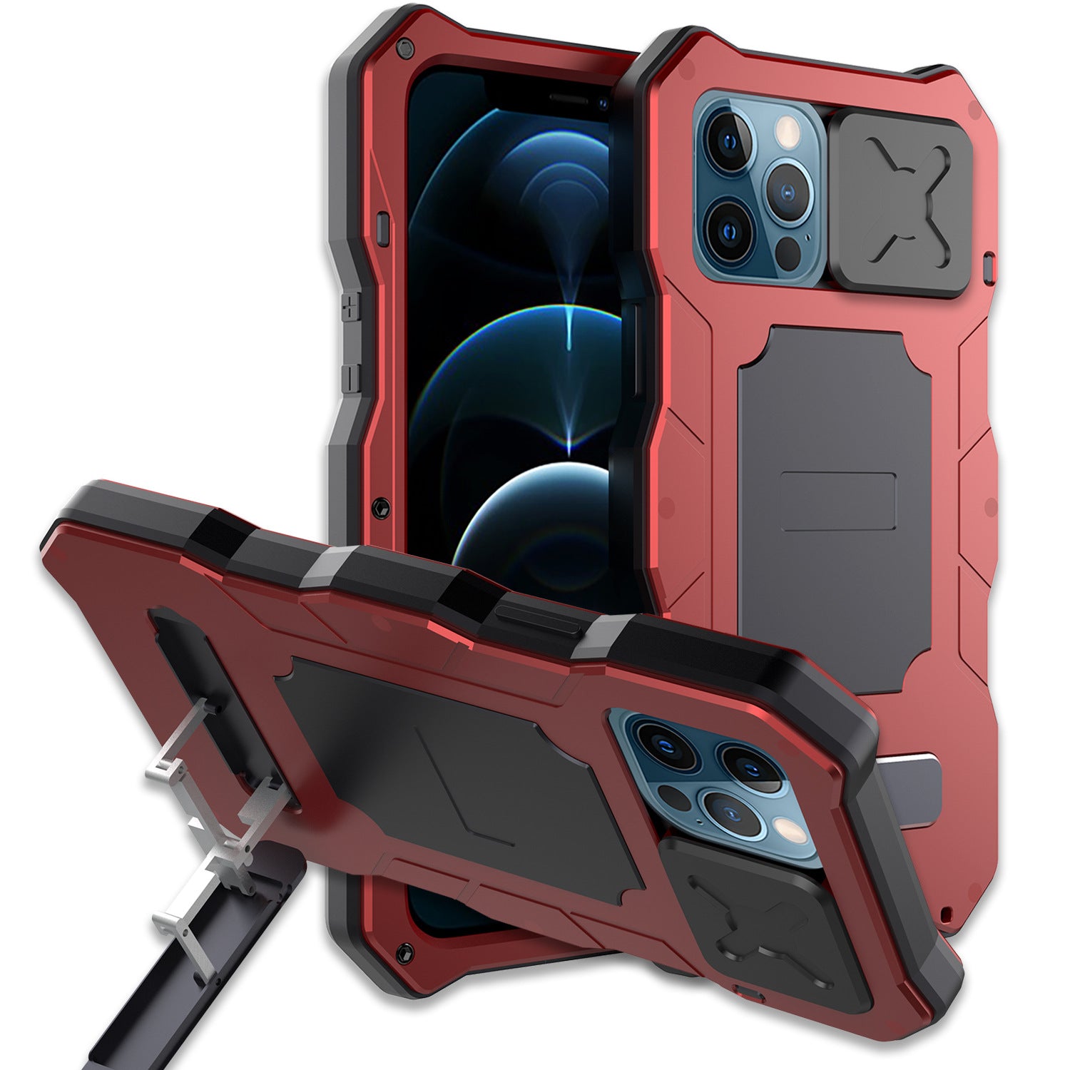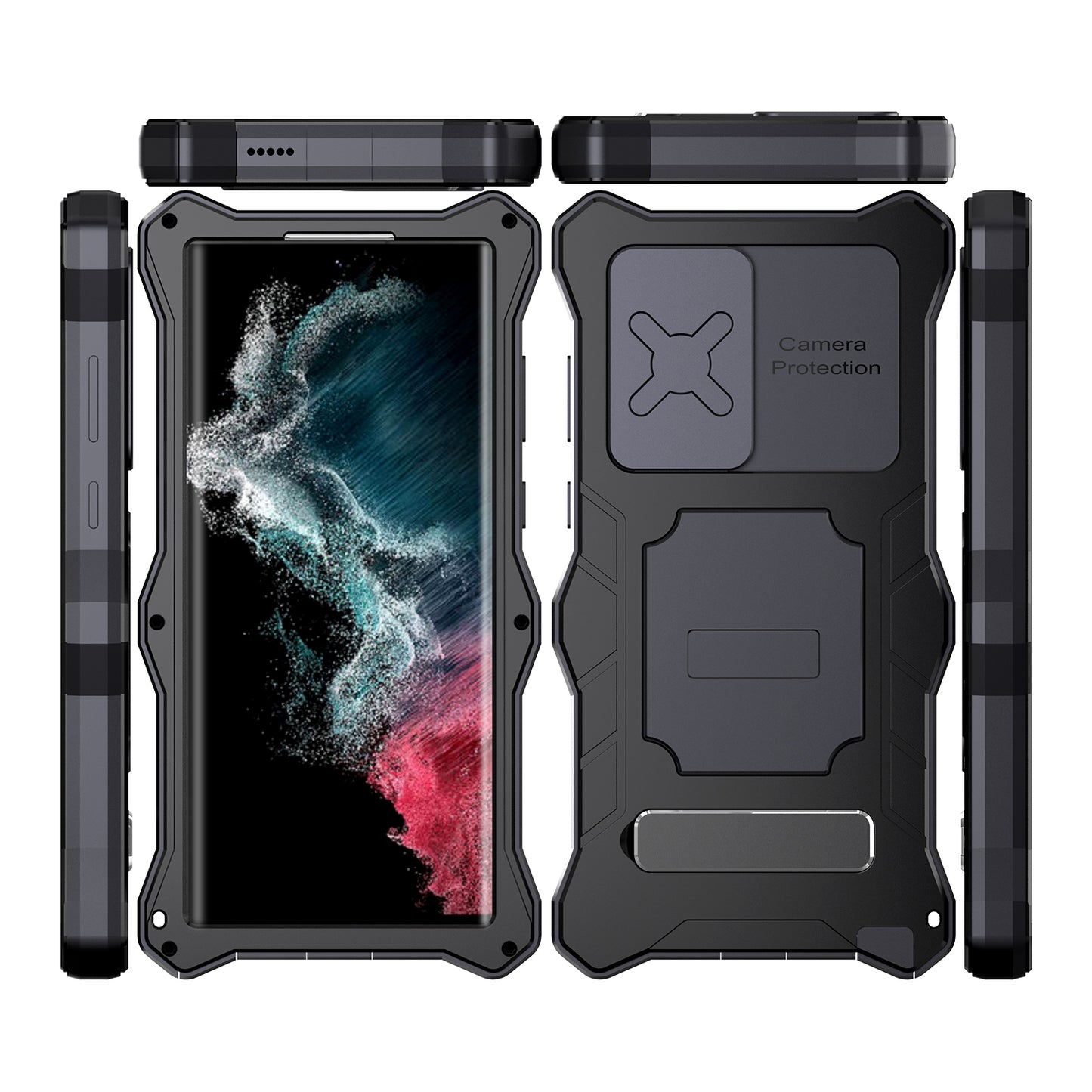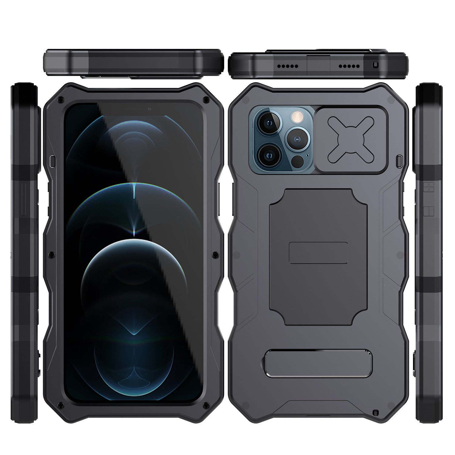 R-Just Lens Protector Kickstand IP54 Outdoor Military Heavy Duty Metal Case