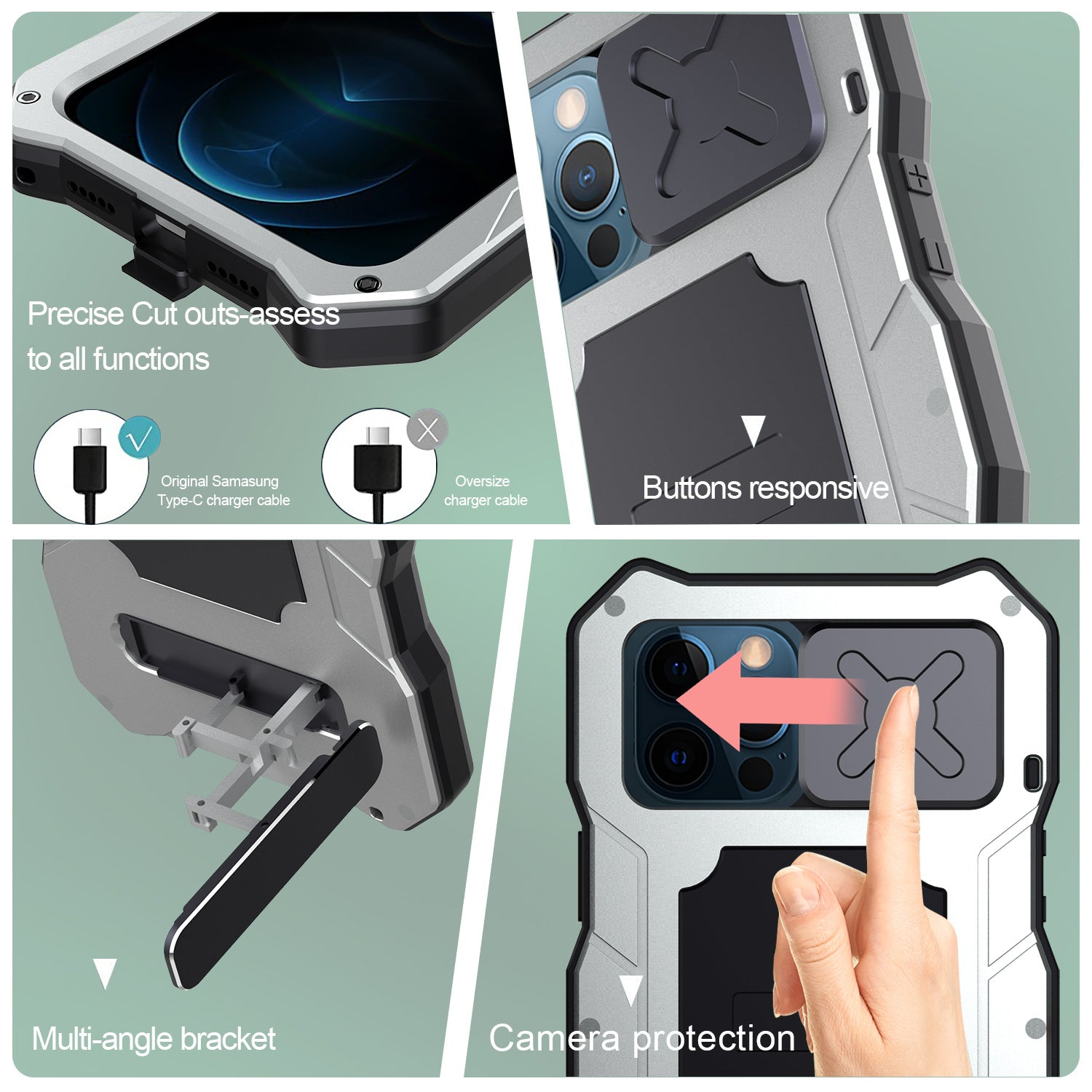 - SCRATCH-RESISTANT DESIGNED FOR OUTDOORS: Made with aluminum metal and silicone that fits your phone perfectly, and is easy to install and remove. Offer high impact protection. Built-in rubber port plugs and button covers to help keep dust and water out.