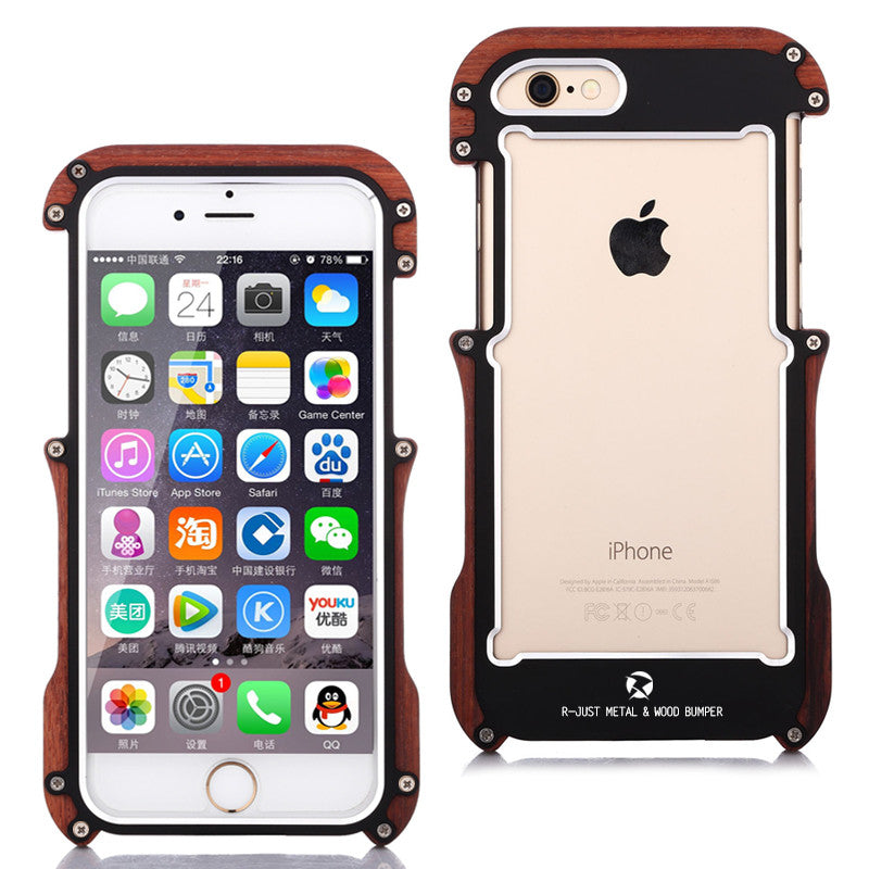 R-Just IRONWOOD Light Slim Timber Aluminum Metal Wood Bumper Case Cover