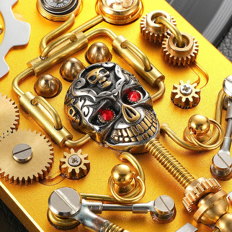 - The large and small copper wires extending from the left and right brains connect the gears to rotate, like the energy body output body controlled by the brain circuit.